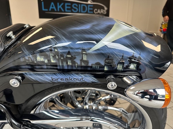 Lakeside Motorbikes are excited to offer a unique 2013 HARLEY-DAVIDSON Softail BREAKOUT FXSB 13, tailored to appeal to enthusiasts of customised bikes. This 2013 model boasts a powerful Petrol 1690cc engine and is finished in black colour. The bike features Custom Wheels, adding to its distinctive appearance. Additionally, it is equipped with a Vance & Hines Big Radius 2 into 1 exhaust system, which enhances its performance. The Custom Headlight provides improved visibility, while the Batman Show Winning Paint Job showcases the bike's customised design. This HARLEY-DAVIDSON Softail BREAKOUT FXSB 13 also features Custom Jobe Artwork, further highlighting its bespoke nature. If this isn't your style, we can provide a colour change of your choice. Recent maintenance includes the replacement of the battery and tyres, ensuring the bike is ready for its next owner. With over £14,000 of custom accessories, this bike is a rare find for those seeking a one-of-a-kind riding experience. We invite potential buyers to view this exceptional vehicle and appreciate its unique characteristics.