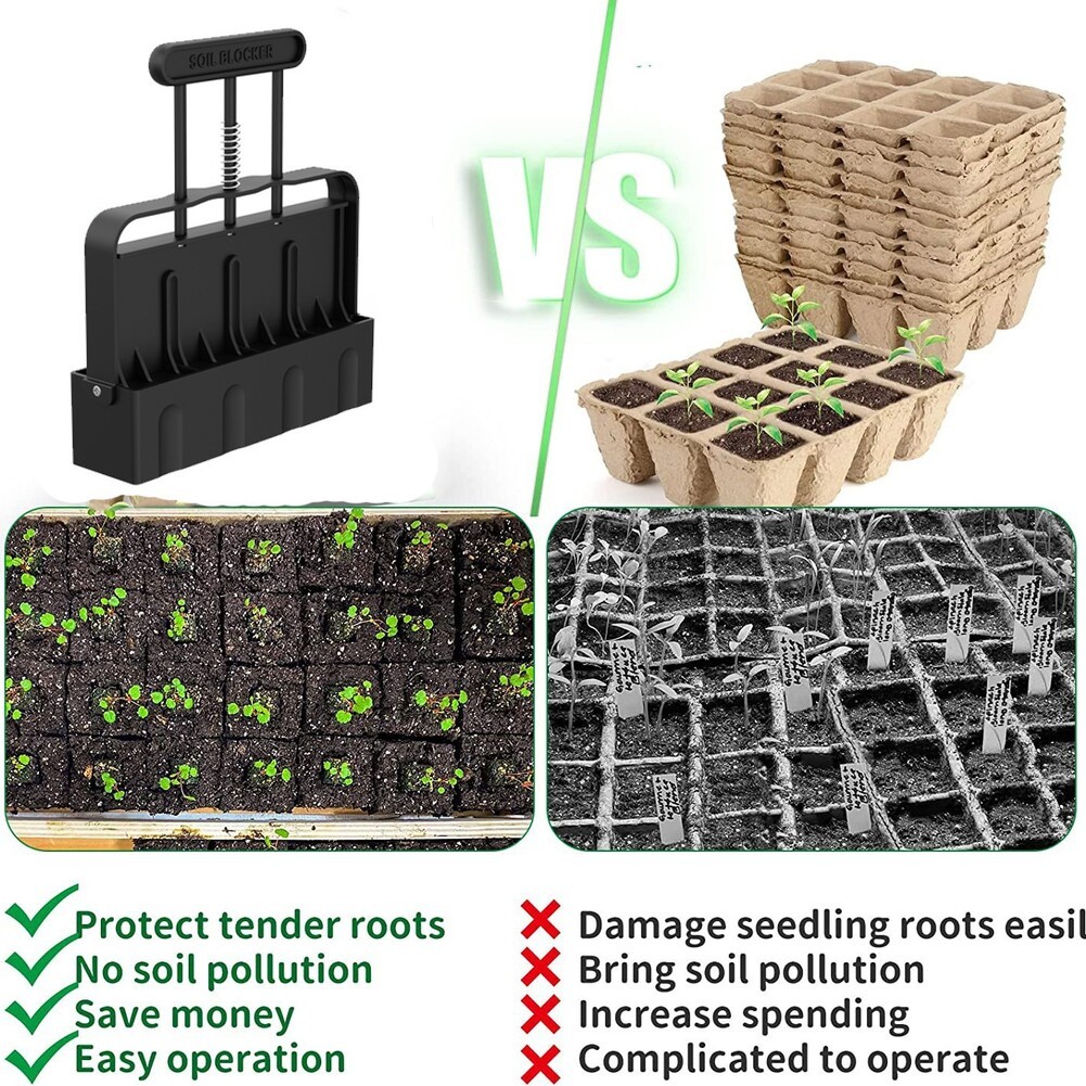 Soil Block Maker Ergonomic Handle 4-compartment Design Three Needle Types