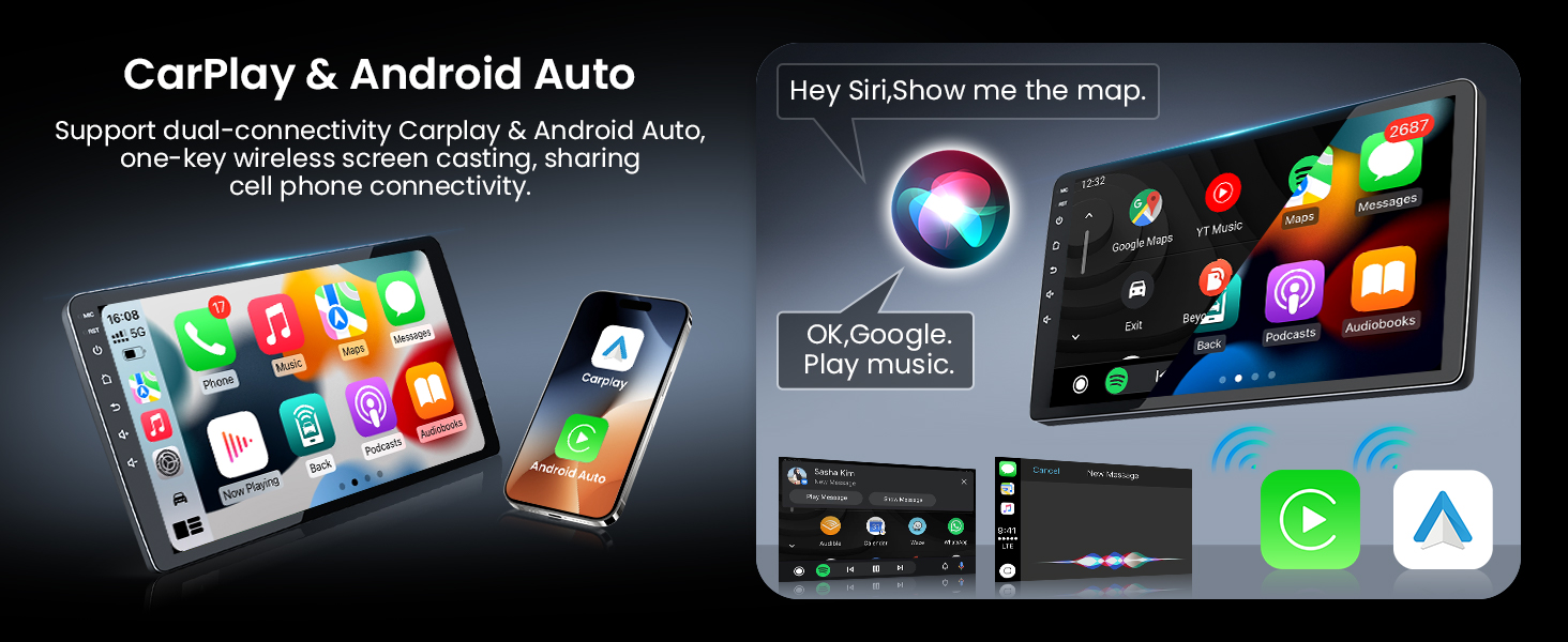 Wireless CarPlay & Android Auto:Enjoy seamless smartphone integration with built-in wireless CarPlay and Android Auto. Easily access your favorite apps, make calls, send messages, and stream music directly from your smartphone without the need for cables.