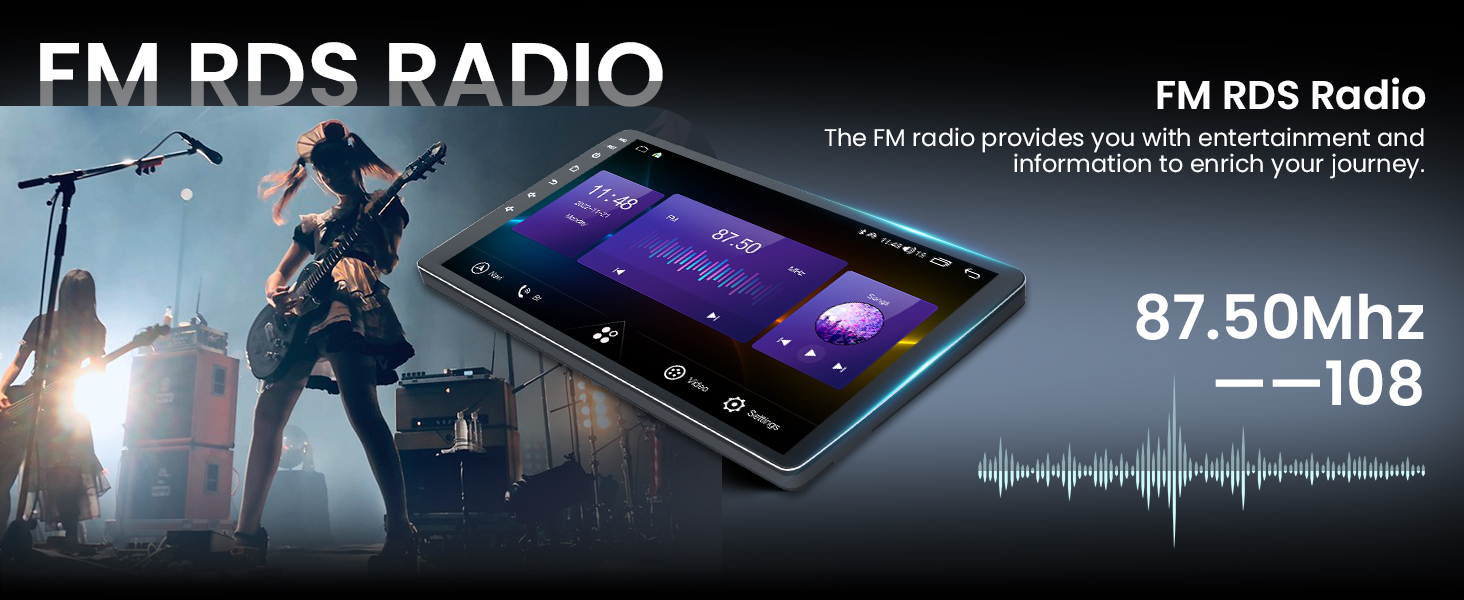 ●FM Radio: Online music you can transfer the music to the car stereo by FM to enjoy the original car stereo sound,with 18 preset stations