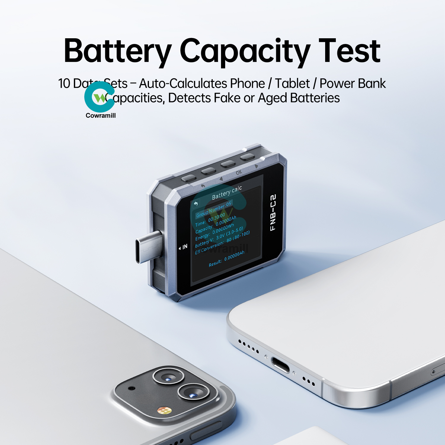 5. Precise battery capacity detection with multi-group data logging: Records 10 sets of data, automatically calculates capacity for phones/tablets/power banks. Detects counterfeit or degraded batteries.