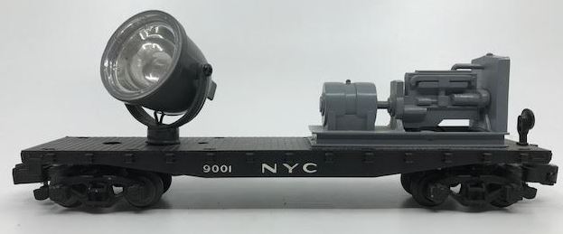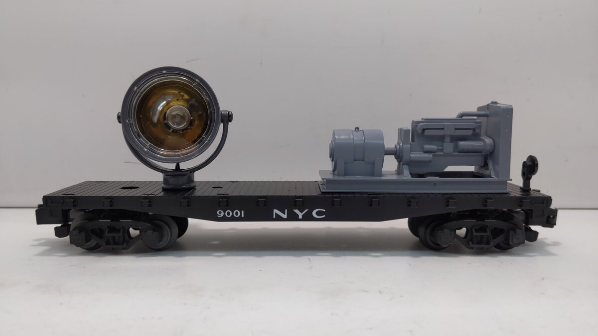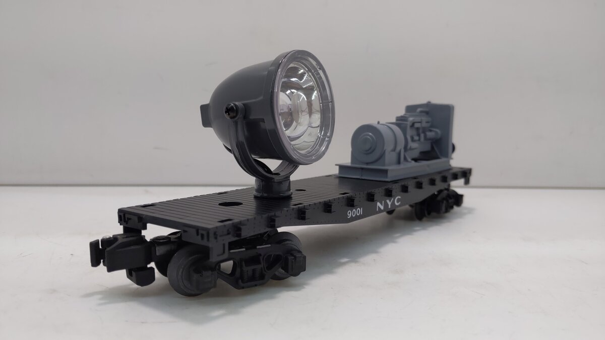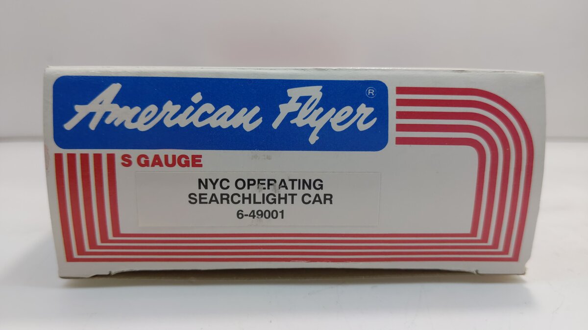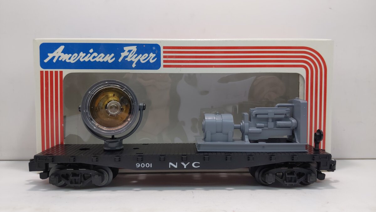 Here is an American Flyer 49001 New York Central Operating Searchlight Car. This searchlight car features an operating search lamp, knuckle couplers, plastic and metal wheels.