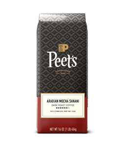 Distinctive in flavor and appearance, Arabian Mocha Sanani grows under harsh, primitive conditions in the arid mountains of Yemen, on the Arabian Peninsula. The mocha variety of coffee favors a terrain of low bushes on barely cultivated land, and these plants sprout miraculously from spring water oases and rock-hewn terraces—where they have to struggle to produce every single coffee cherry.