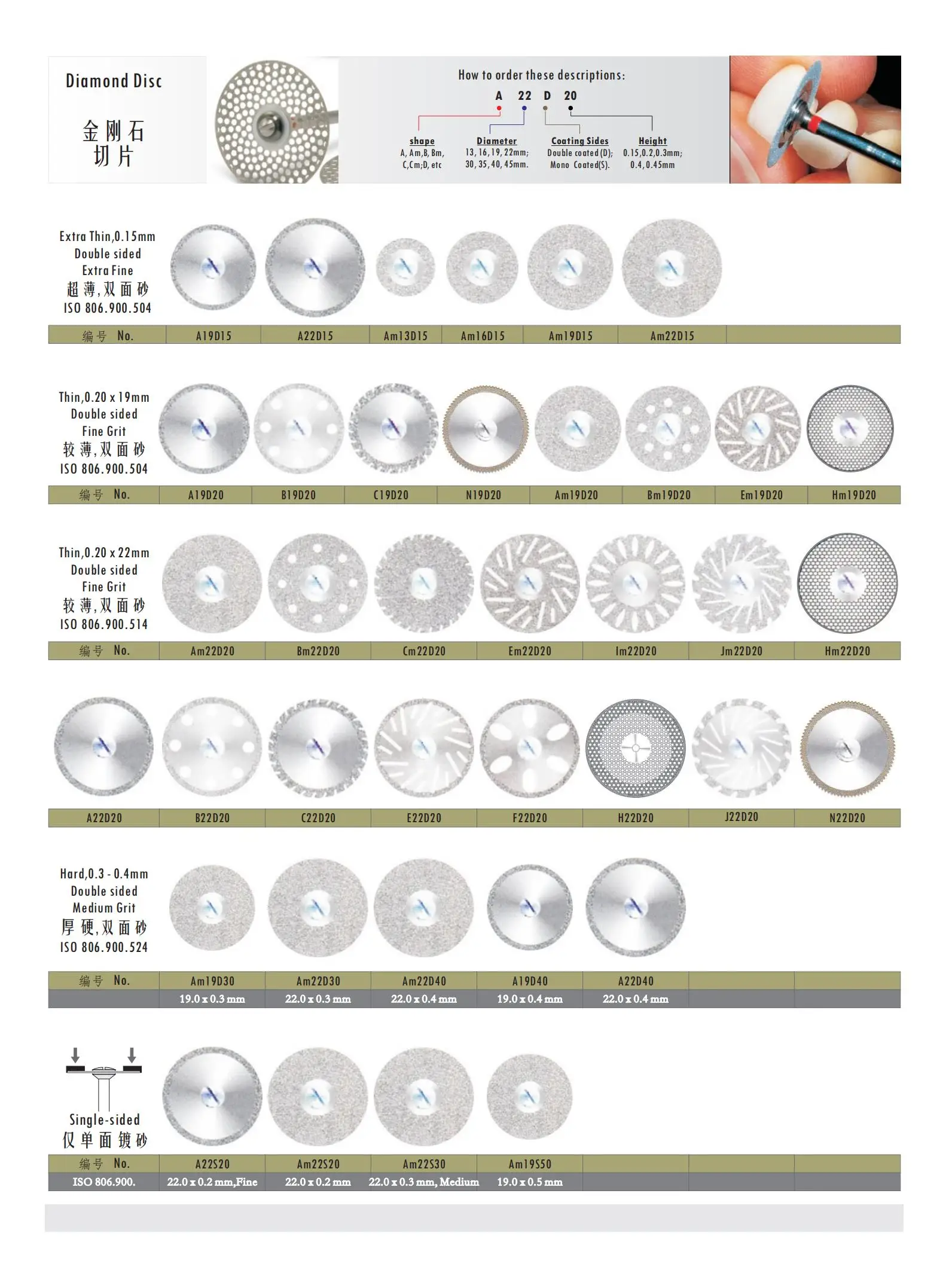 solid disc;for ceramics, gold, steel, plastic veneers, all chrome-cobalt alloys including vitallium;