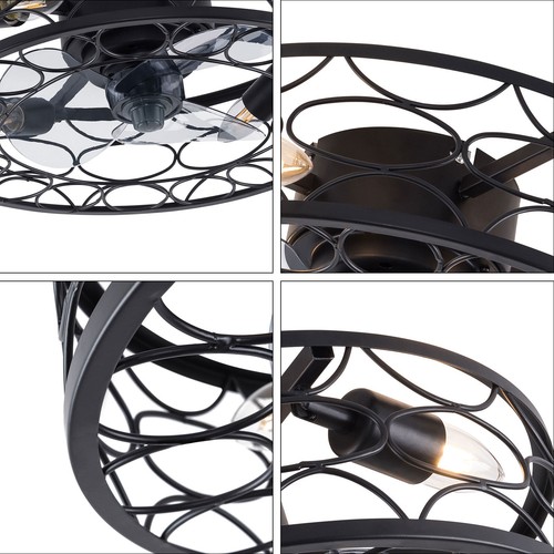 Retro ceiling fan with lights: The outside is designed with a metal mesh cage, the fan blades are perfectly hidden in the lampshade, so you are safer during use. The easy-to-install fan ceiling light is perfect for use in bedrooms, living rooms, dining rooms, kitchens and more.