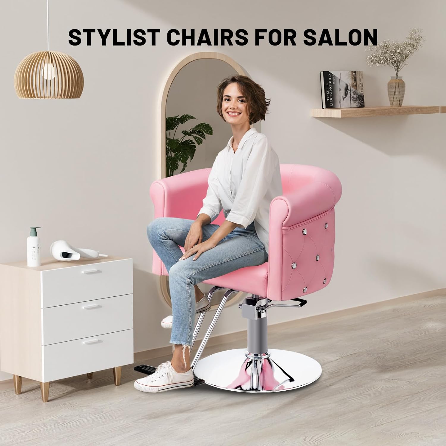 【Easy To Install And Use】Quick and easy to put together this modern stylist chair. Some parts are installed already, so there's only 3 steps to assemble, which could be done in 5 minutes! A good styling chair for salon professionals.