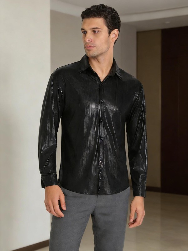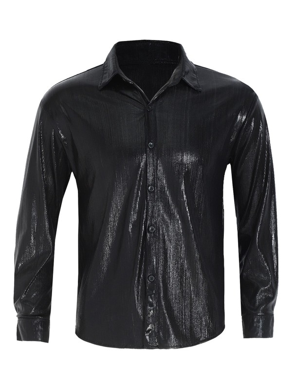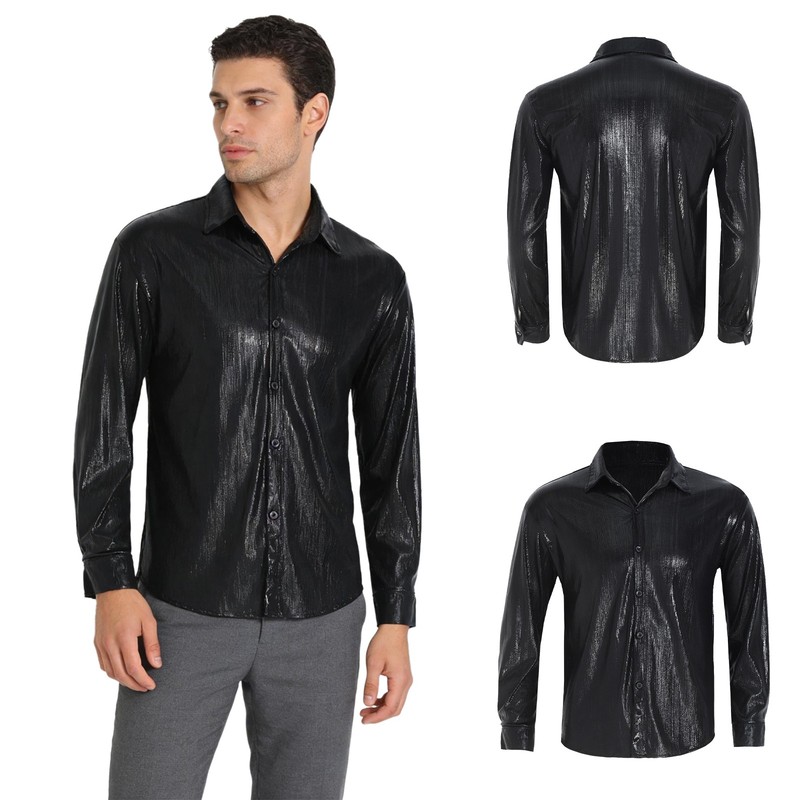 Mens Shirt Business Blouse Nightclub Top Lapel Turn-down Collar Parties Casual