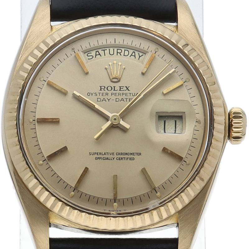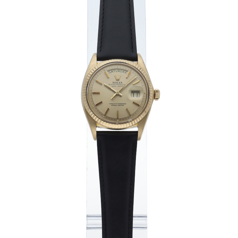 | This is an antique model of Rolex's top-of-the-line Day-Date. It is a luxurious status watch made with lavish yellow gold. |
