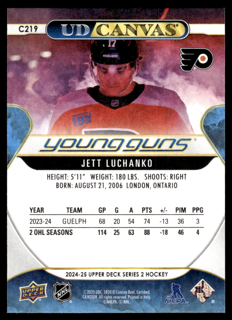 | 2024-25 Upper Deck UD Canvas Young Guns Jett Luchanko Rookie Philadelphia Flyers |