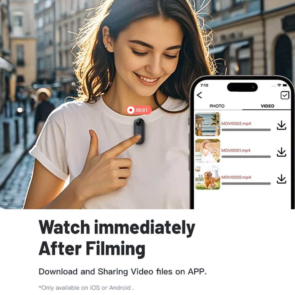 LIVE PREVIEW & Play Back &Download on App Mount up the body cam and use App preview your shots and snap away like a pro.( Recommended to use within 32ft(10m))