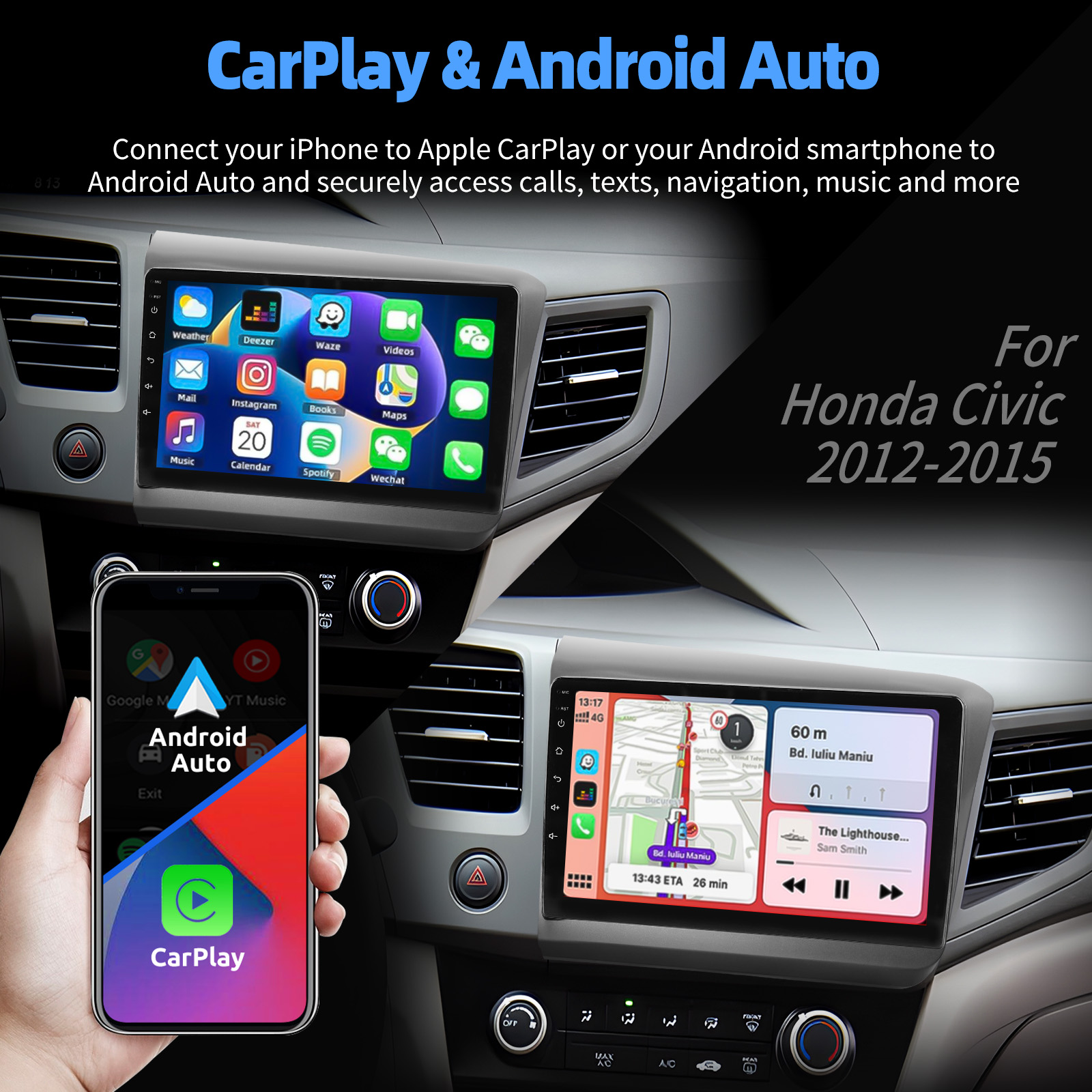 9 Inch Android 15 Car Radio For Honda Civic 2012-2015: The Android car radio with 9" 1280*720 IPS capacitive touch screen, 1GB RAM and 32GB ROM allows you to download your favorite apps and videos, so that driving will never be boring .No additional frame, no cable change, plug and play.