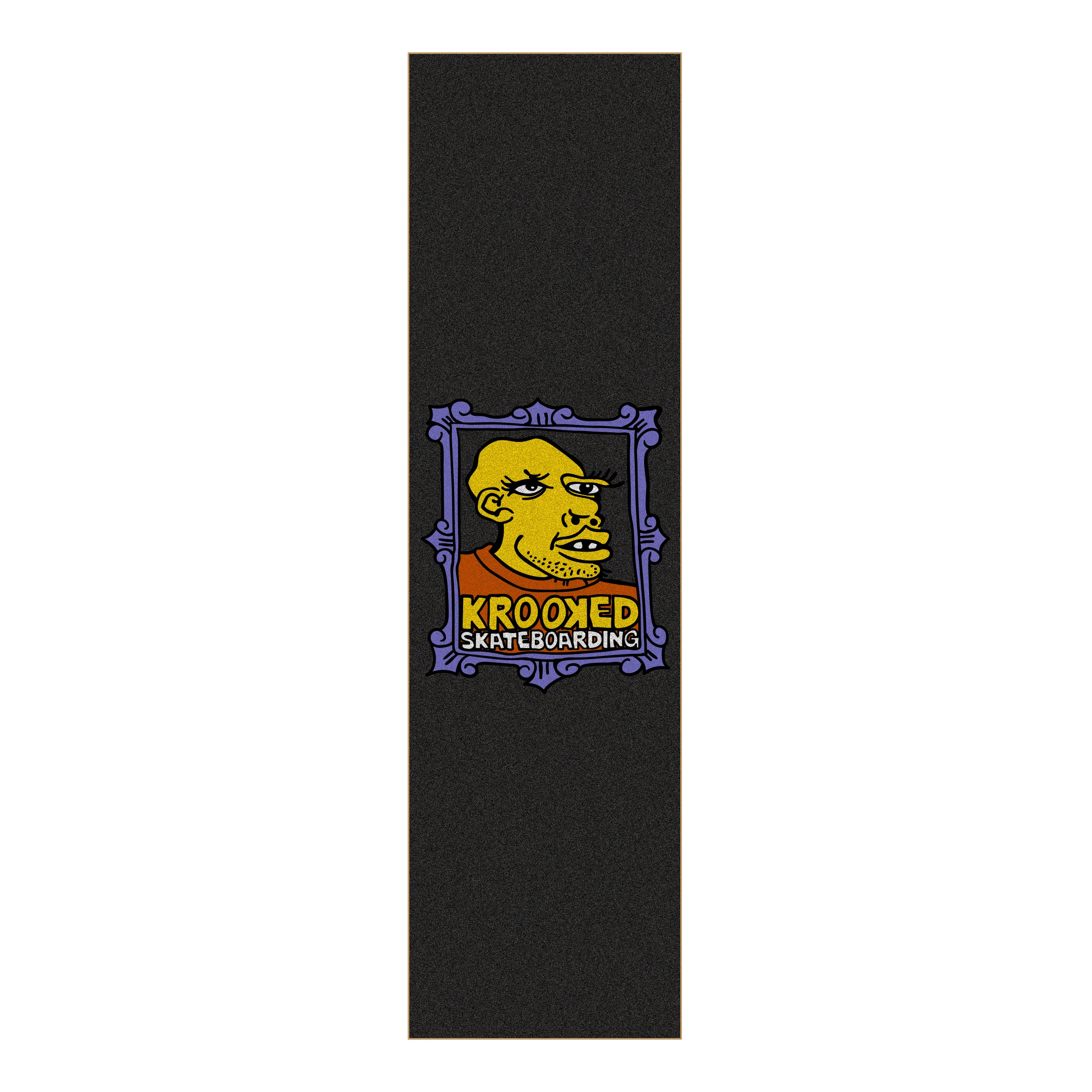 Krooked skateboards grip tape. Measures 9" x 33". MOB black grip with Frame Face graphic by Mark Gonzales.