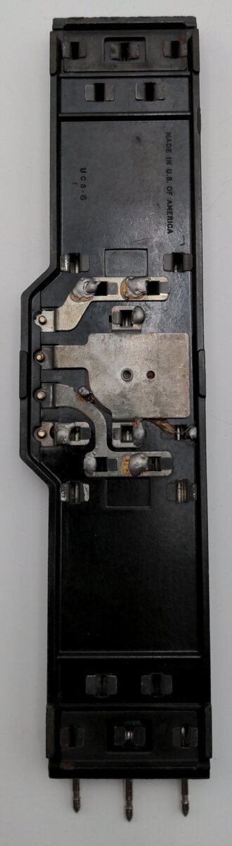 This track is identical to the Postwar Era UCS track and has the same features. When the Uncouple Button is pressed cars spotted over the track with operating couplers including those with magnetic couplers, thumbtack-style couplers and electromagnetic couplers activated by slide shoes will uncouple. When the Unload button is pressed operating cars will unload. The track section measures 10 inches long.