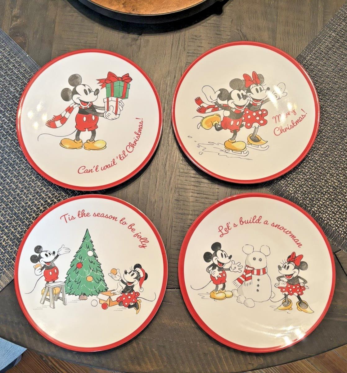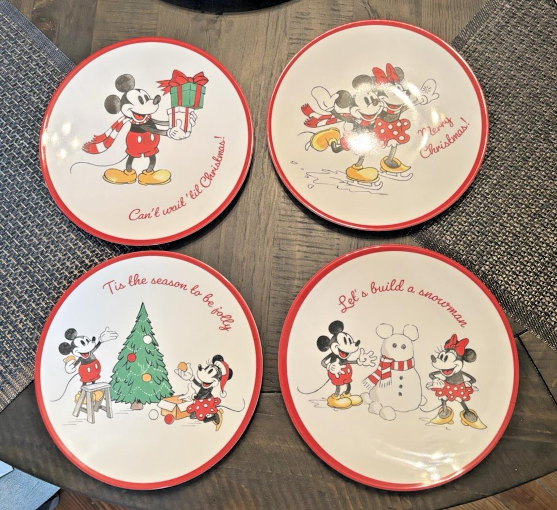 4 Mickey and Minnie Seasonal Winter plates. 8.5" each a different scene. Melamine un-breakable