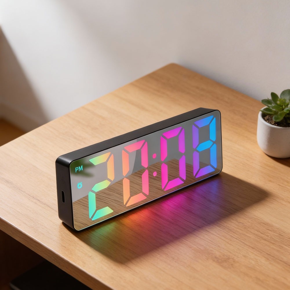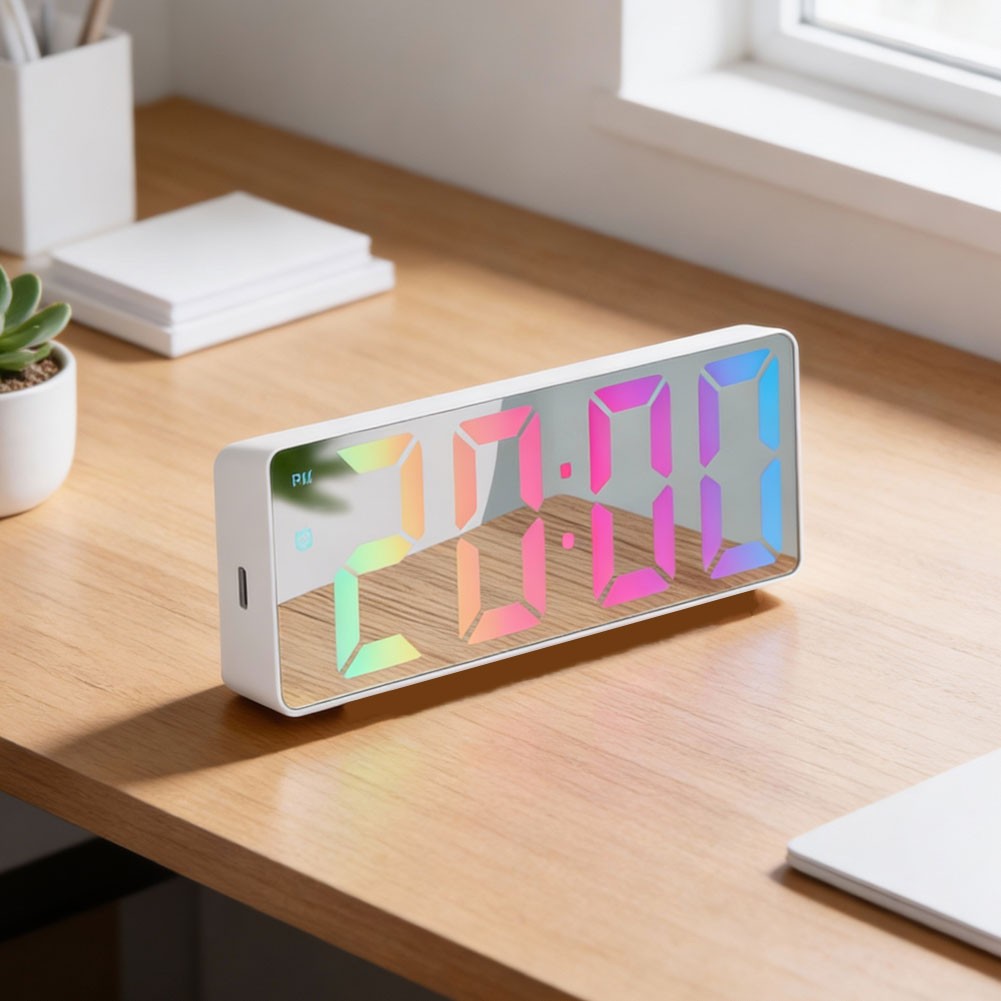 * Nom de la pièce : horloge LED colorée à surface miroir