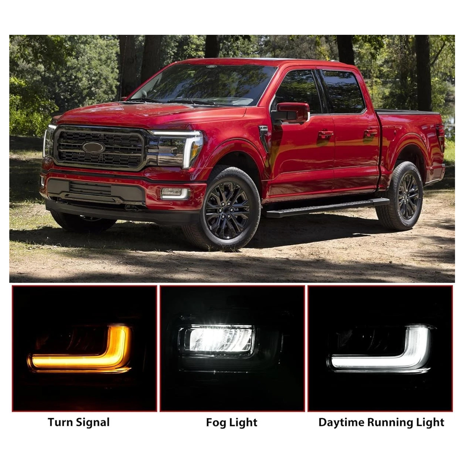 【Upgraded Multi - functions】: Integrated white LED daytime running lights to enhance daytime visibility; Amber turn signals make your vehicle stand out when turning, ensuring driving safety. Matches the factory aesthetics of your Ford F-150 with a seamless fit and modern LED lighting.