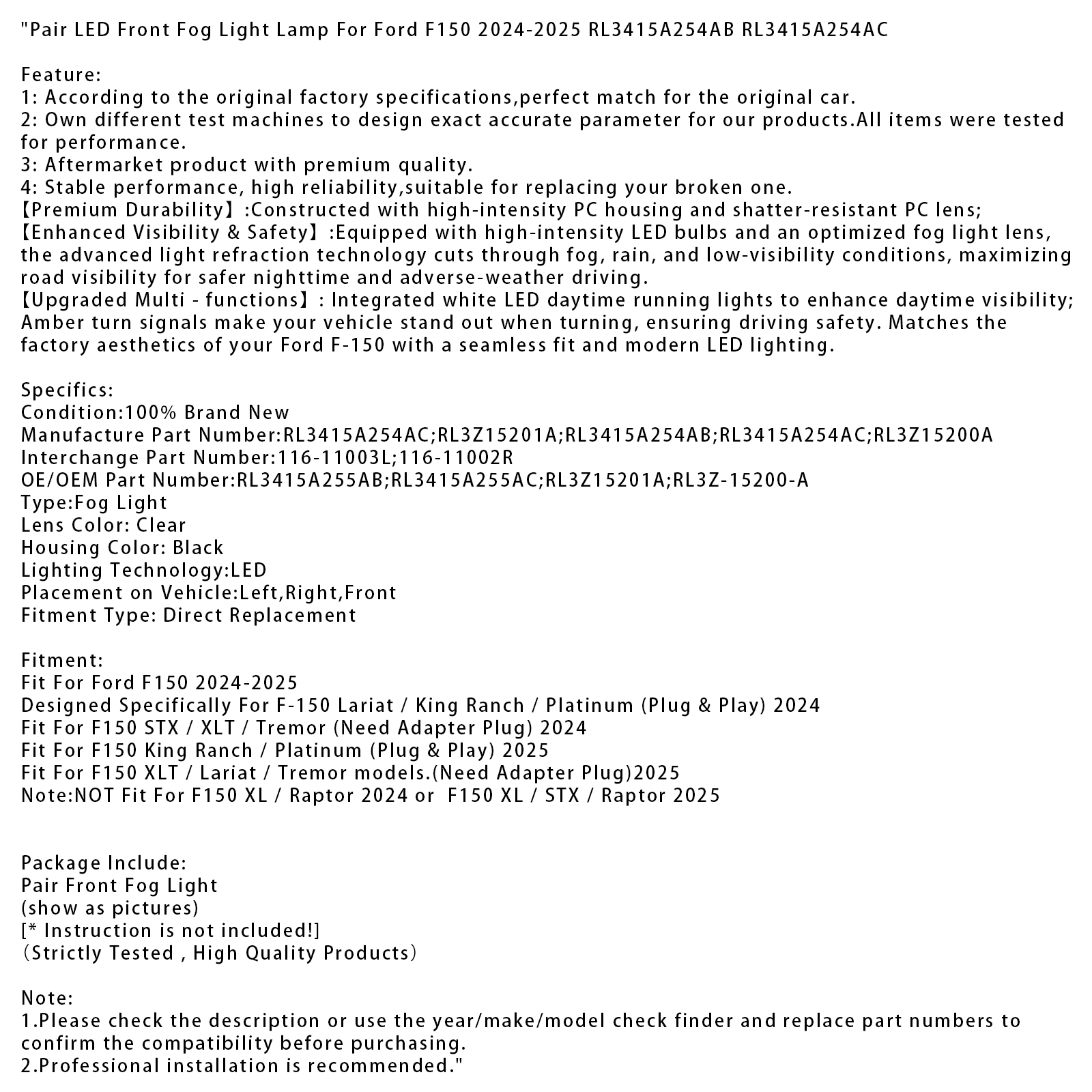 Fit For F150 XLT / Lariat / Tremor models.(Need Adapter Plug)2025