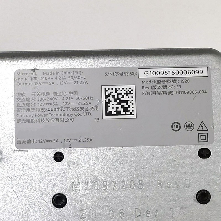 Input: 100-240V 4.21A 50/60Hz