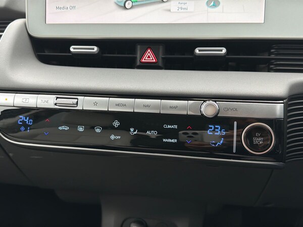 ..Driver Convenience,Blind Spot Collision Avoidance Assist,Digital Clock,Drive Mode Select,Forward Collision-Avoidance Assist - Junction Turning,Head Up Display - HUD,Parking Distance Warning - PDW - Forward-Reverse,Rear View Monitor with Dynamic Parking Guidance,Smart Cruise Control with Stop and Go,Tyre Pressure Monitoring System (TPMS) with Individual Tyre Pressure WarningEntertainment,12.3in Touchscreen Satellite Navigation and Media Centre,12V Power Outlet - Front Console,BlueLink,Bluetooth Connectivity with Voice Recognition,CCS Combo Rapid Charge Port - 50kW,Drivers Supervision Instrument Cluster with Full TFT Display - 12.3in,eCall,IONITY - Via Charge myHyundai App (1 Year Subscription From New),MapCare Programme - 3 Years of Map Updates,Phone Connection - Android Auto,Phone Connection - Apple CarPlay,Speakers - BOSE Premium Audio - 7 Speakers - 1 Subwoofer,Trailer Wiring Package,USB Charging Ports - 2 Front,USB Connectivity Port - 1 Front,Wireless Phone Charging PadExterior,20in Alloy Wheels,Door Mirrors - Electric Adjustment - Folding and Heated,Door Mirrors - High Gloss,Door Scuff - Deluxe Plate,Electric Windows - Front and Rear with Anti-Trap Mechanism and One Touch Control,Exterior Door Handles - Body Coloured,Exterior Door Handles - Flush,Headlamp Surround,Indicator Lights - Door Mirror,Privacy Glass - Rear Windows,Rear Spoiler with Integrated LED Brake Light,Rear Windscreen - Heated and Privacy,Side Body Moulding - Chrome,Side Sill Moulding - Anthracite,Tailgate - Up Lift Opening,Tyre Repair Kit,V2L - Vehicle to Load - Outside,Windows - Front and Rear - Laminated Glazing,Windscreen and Front Windows - Solar Glass,Windscreen with Acoustic FilmInterior,A-B-C Pillar Trim - Cloth,Air Conditioning - Dual Zone Climate Control,Alloy Pedals,Automatic Windscreen Wipers with Rain Sensor,Centre Console - Sliding,Cup Holders - Front,Drivers Seat Height Adjustment - Electric,Drivers Seat Lumbar Support - Electric,Front Passengers Seat Electric Adjustments,Front Passengers Seat Lumbar Support - Electric,Front Seat Back Pockets - Driver and Passenger Seat,Front Ventilated Seats,Frunk - Under the Bonnet Storage,Head Restraints - Vertical Adjustment - Second Row Outer,Head Restraints - Vertical and Horizontal Adjustment - Front,Heated Front Seats,Heated Rear - Outer - Seats,Heated Steering Wheel,Highway Drive Assist - Level 1,Inside Rear View Mirror - Electrochrome,Interior Door Handles - Metal Paint Effect,Interior Light - Luggage Compartment,Interior Mood