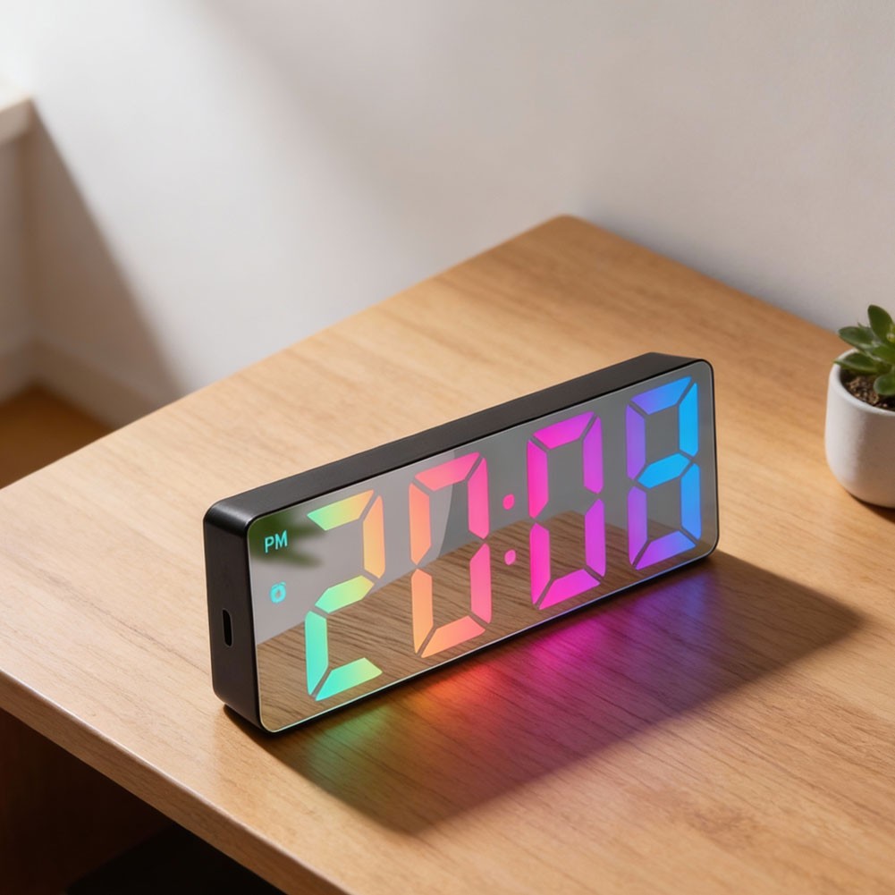 * Nom de la pièce : horloge LED colorée à surface miroir