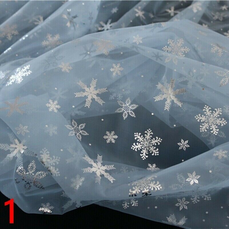 Organza Fabric Snowflake Tulle Sheer Mesh Shiny Christmas Sew Cosplay Dress Trim