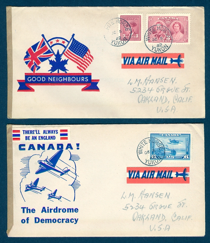 CANADA 1942 WHITE HORSE YUKON PATRIOTIC CACHET CENSOR TO USA
