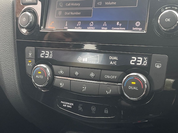 ..Driver Convenience,Cruise Control with Speed Limiter,Outside Temperature Sensor,Rear View Camera,Selectable Steering - Normal or Sport,TPMS - Tyre Pressure Monitoring System,Trip ComputerEntertainment,6 Speakers,Advanced Drive Assist Display - 5in TFT Coloured Screen,AM-FM-CD Audio System with DAB,AUX Socket for MP3 Player,Bluetooth with Audio Streaming,Front 12v Power Sockets x2,Nissan Connect 7in Touchscreen Navigation and Entertainment System,Smartphone App Integration,USB PortExterior,17in Alloy Wheels,Body Coloured Door Mirrors,Body Coloured Handles,Chrome Glass Surround,Electric Heated Auto-Folding Door Mirrors,Front and Rear Electric Windows,Puncture Repair Kit,Rear Roof SpoilerInterior,3 Height Adjustable Rear Headrests,60-40 Split Rear Folding Seats,Ambient Lighting Centre Console,Auto Wipers,Boot Light,Centre Console Storage and Armrest,Chrome Interior Door Handles,Daytime Running Lights Dip Function When Turn Signal Applied,Driver Seat Height Adjustment,Drivers Seat with Manual Lumbar Support,Dual Zone Climate Control Air Conditioning,Front and Rear Door Pockets with Drink Holders,Height Adjustable Front Head Restraints,Interior Ambient Lighting,Leather D Shaped Steering Wheel,Leather Gear Lever,Leather Knee Pad,One Touch 4 x Auto Windows with Illuminated Switches,Parcel Shelf - Stow Function Under Luggage Board,Piano Black Dash Trim,Pollen Filter,Remote Audio Control,Seats - Passengers Height Adjustment,Steering Wheel Mounted Audio Controls,Tilt and Telescopic Adjustable Steering WheelEntertainment,6 Speakers,Advanced Drive Assist Display - 5in TFT Coloured Screen,AM-FM-CD Audio System with DAB,AUX Socket for MP3 Player,Bluetooth with Audio Streaming,Front 12v Power Sockets x2,Nissan Connect 7in Touchscreen Navigation and Entertainment System,Smartphone App Integration,USB Port