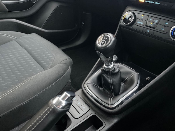 ..Driver Convenience,Trip Computer,Tyre Pressure Monitoring System - TPMSEntertainment,Ford SYNC with Touchscreen - DAB Radio - Apple CarPlay and Android AutoExterior,15in Alloy Wheels - 8 Spoke,Chrome Belt Line Finisher,Door Handles - Body Colour,Door Mirrors - Heated - Electric - Integrated Side Indicators - Body Coloured,Front Bumper - Body Coloured,Front Upper Grille - Chrome - Horizontal Bars,Quickclear Heated Windscreen,Rear Bumper - Body Coloured Upper and Self Colour Lower,Rear Spoiler - Body Colour with Centre High Mounted Stop Light,Tyre Repair Kit,Windows - Electrically Operated Front with One Touch Lowering-Closing on Drivers Side,Wipers - Standard with 6 Speed Interval SettingsInterior,3-Spoke Leather Trimmed Steering Wheel with Audio Controls,Air Conditioning - Manual,Centre Console with Two Cupholders and 12V Power Point,Courtesy Light - Front Map Light and Rear - Overhead LED,Door Lever - Chrome Finish,Front Seat - Drivers Manual Height and Fore-Aft Adjustment,Gearshift Knob - Leather-Trimmed,Glovebox - Illuminated,Headliner - Woven,Leather-Trimmed Handbrake,MyKey,Overhead Console - Sunglasses Holder,Rear Fog Lamps,Rear Seat - 60-40 Split Back and Cushion,Seats - Front Comfort Style,Steering Column - Rake and Reach Adjustment,Warning Triangle StorageEntertainment,Ford SYNC with Touchscreen - DAB Radio - Apple CarPlay and Android Auto