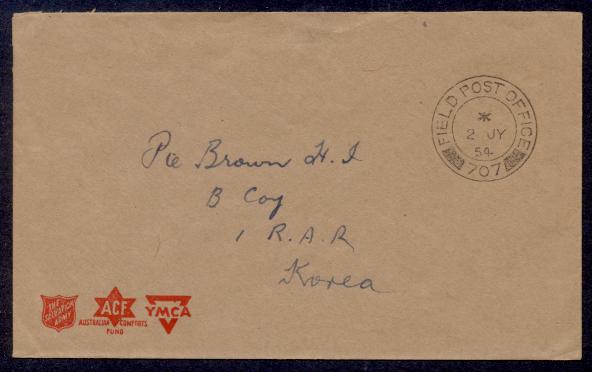 UNITED KINGDOM FIELD POST OFFICE 707 KOREA 1954 YMCA ENVELOPE