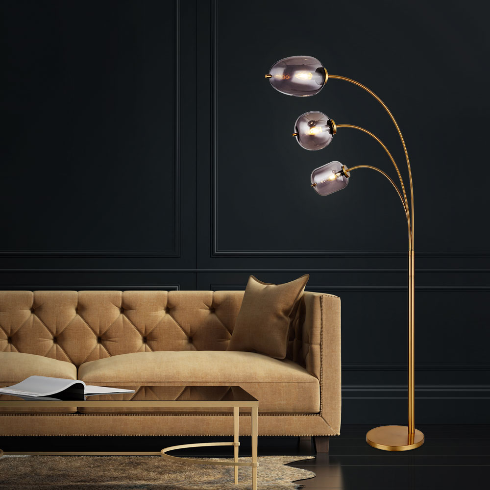 Lampada in piedi soggiorno lampada lampada lampada ottone 3 colori di fumo in vetro fiamma l 80 cm