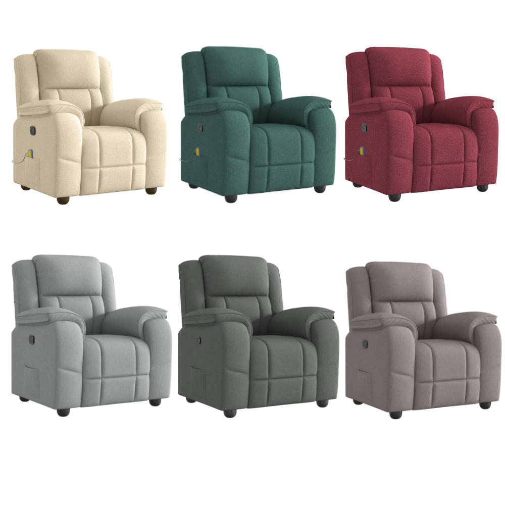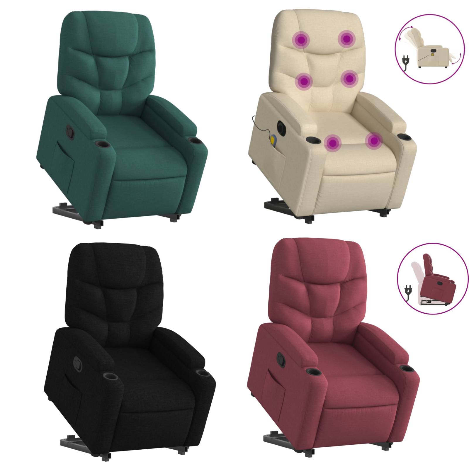 Lehne dich zurück und entspanne dich in diesem äußerst bequemen elektrischen Massagesessel mit Aufstehhilfe! Elektrische Aufstehhilfe: Dieser Relaxsessel ist mit einem Elektromotor zum Anheben ausgestattet. Dank der Aufstehhilfe, die den gesamten Sessel nach oben bringt, kannst du ganz einfach auf Knopfdruck aufstehen, ohne deinen Rücken und deine Knie zu belasten.Elektrische Liegefunktion: Dieser Relaxsessel ist mit einem Elektromotor ausgestattet, der Fußstütze und Rückenlehne durch einfaches Drücken des seitlichen Knopfes automatisch in jede gewünschte Position bringt. Diese Funktion ermöglicht eine maximale Neigung von 135 Grad. Darüber hinaus lässt sich die Rückenlehne auf Knopfdruck automatisch in die ursprünglichen Position zurückbringen.Vibrationsfunktion: Dank der 6 Massagepunkte genießt du eine gezielte Massage. Zudem lassen sich verschiedene Massageprogramme über die mitgelieferte Handsteuerung auswählen. Die Massagefunktion wird über den USB-Anschluss betrieben, der eine zertifizierte 5-V-USB-Stromquelle erfordert (nicht im Lieferumfang enthalten).Bequemes Sitzerlebnis: Die dick gepolsterte Sitzfläche, die Rückenlehne und die breiten Armlehnen sorgen für ein behagliches und wohliges Sitzgefühl. Der Bezug aus Stoff weist eine schlichte und saubere Optik auf und ist auch atmungsaktiv und langlebig.Praktische Getränkehalter und Seitentasche: Dieser Sessel verfügt über zwei praktische Becherhalter und eine Seitentasche, in der du wichtige Sachen griffbereit aufbewahren kannst.Solider und stabiler Rahmen: Der Rahmen aus Holz und Metall sorgt für eine solide Struktur und hohe Stabilität. Dieser TV-Sessel ist bequem und langlebig.