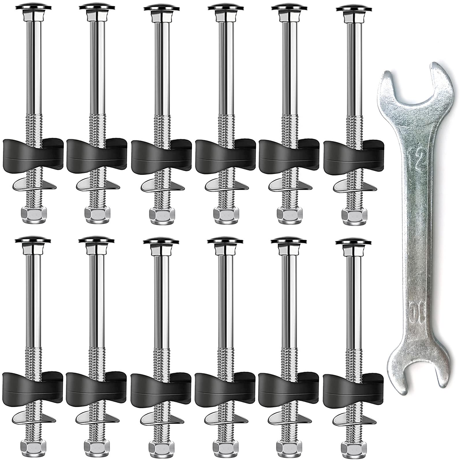 Application:Be sure to measure the length of old screws before purchasing trampoline screws. (Refer to Figure 2)Bolt Length 3"Nut Height 0.2"Black Gap Spacer Height 0.3"Available Bolt Length 2.5"The trampoline screws are compatible with many different trampoline brands. The installation of long screws on the trampoline can make the trampoline more stable and not easy to shake. Trampoline Replacement Screw Parts, Trampoline Bolts And Nuts Suitable for Large Trampolines and Small Trampolines Jump Stability Tool.Package Includes: 12 x Trampoline Screws, 1 x open wrench.Material: galvanized steelScrew diameter(approx): 6mm/0.24inchTotal length(approx): 77mm/3 inchFeature:Highly resistant against turning, preventing the lock nuts from weakening and loosening under vibration and torque which reduces the strength of hold. Guaranteed to stay intact and in firm hold making virtually indestructible.Compared with the bolt heads of other brands of trampoline screws, the square shoulder underneath the rounded head is unique because this design can resist rotation when the nut is removed or tightenedNote:Nylon Lock Nuts Use the matching wrench to tool to screw in.
