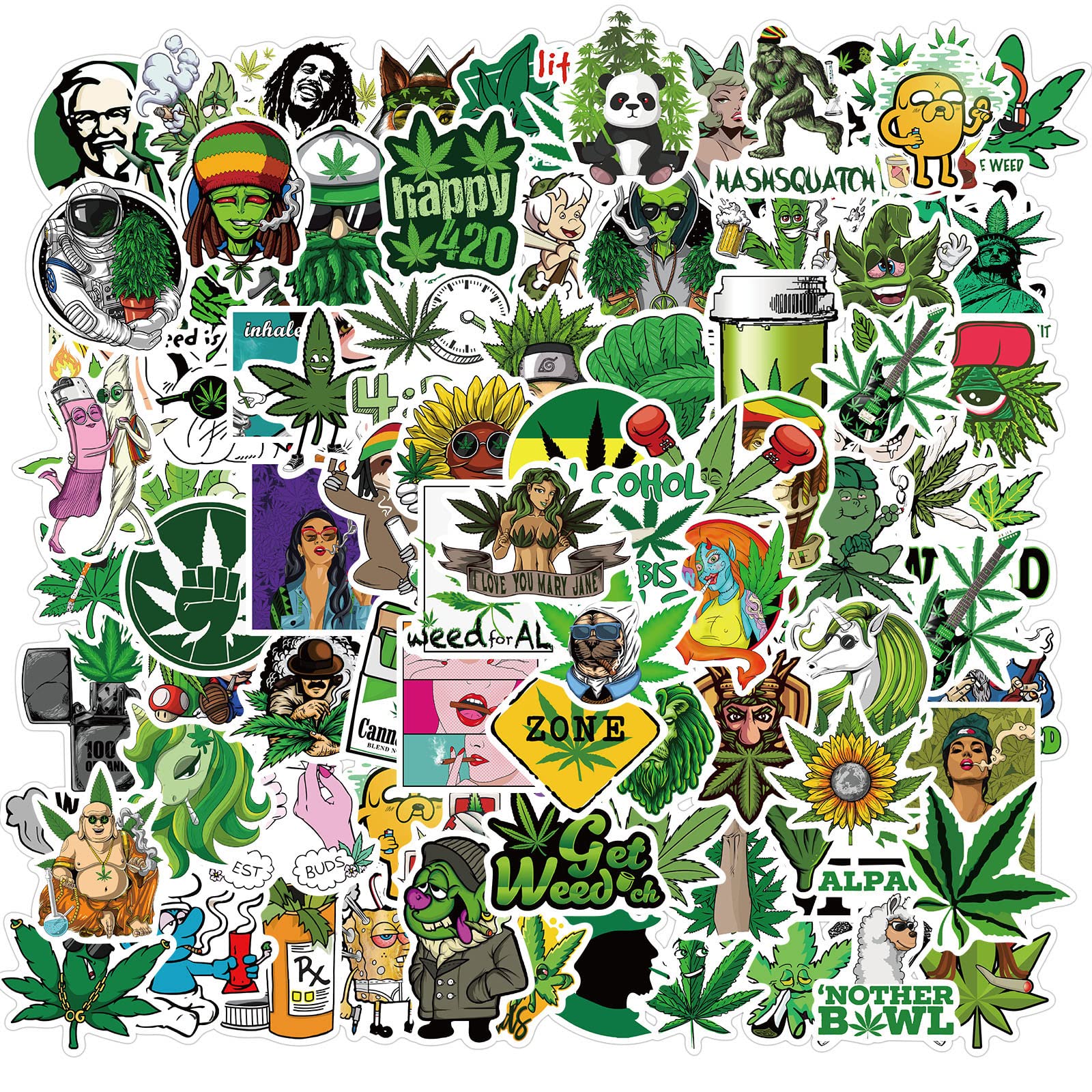 100 Pcs Weed Stickers Pack for 5.28 x 3.78 x 0.63 inches,