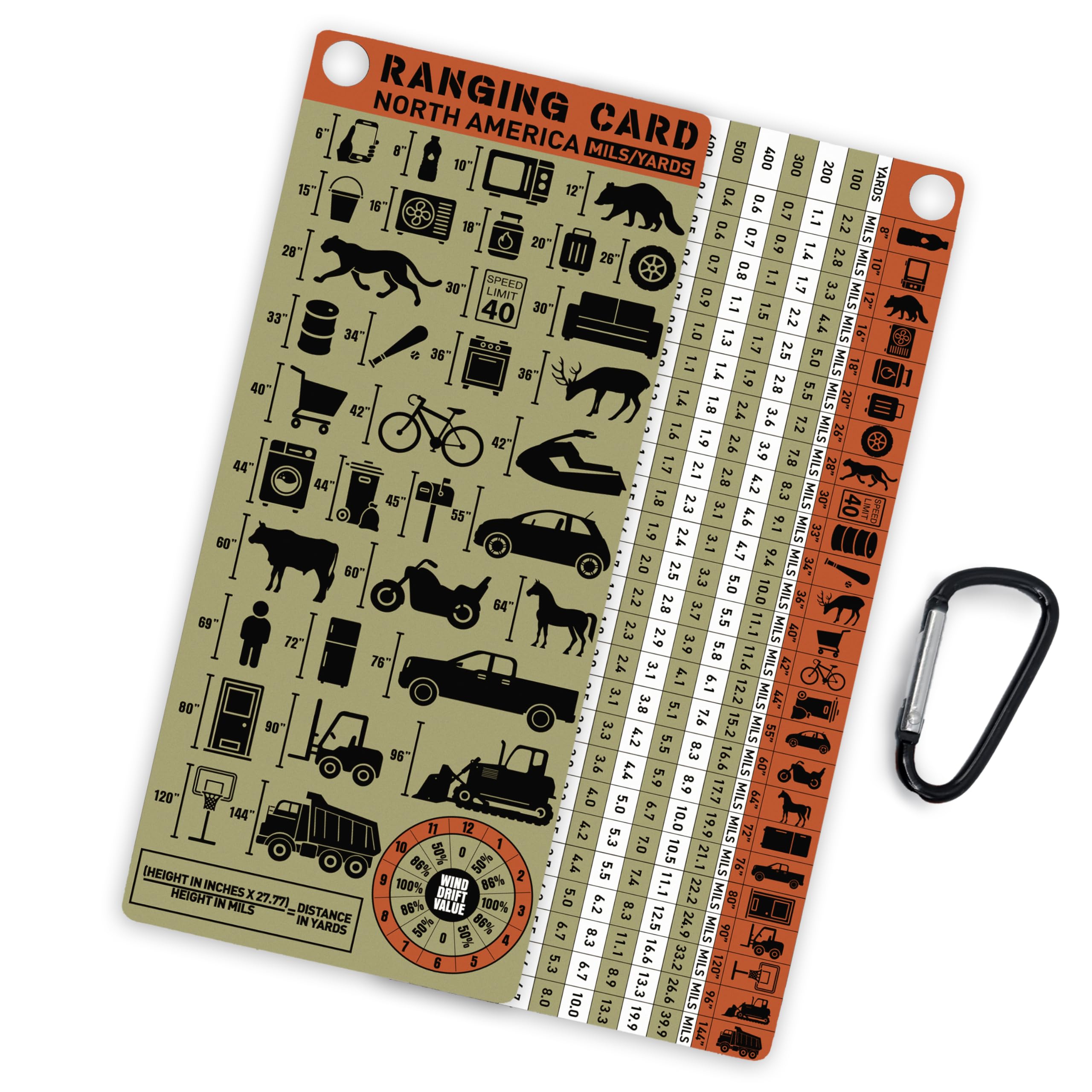 Built for the Field – The Value Plus Ranging Card (North America Milliradians .mils Version) is waterproof, scratch-resistant, lightweight, flexible, and ultra-durable. Carabiner included to clip to your backpack or it fits most magazine pouches.