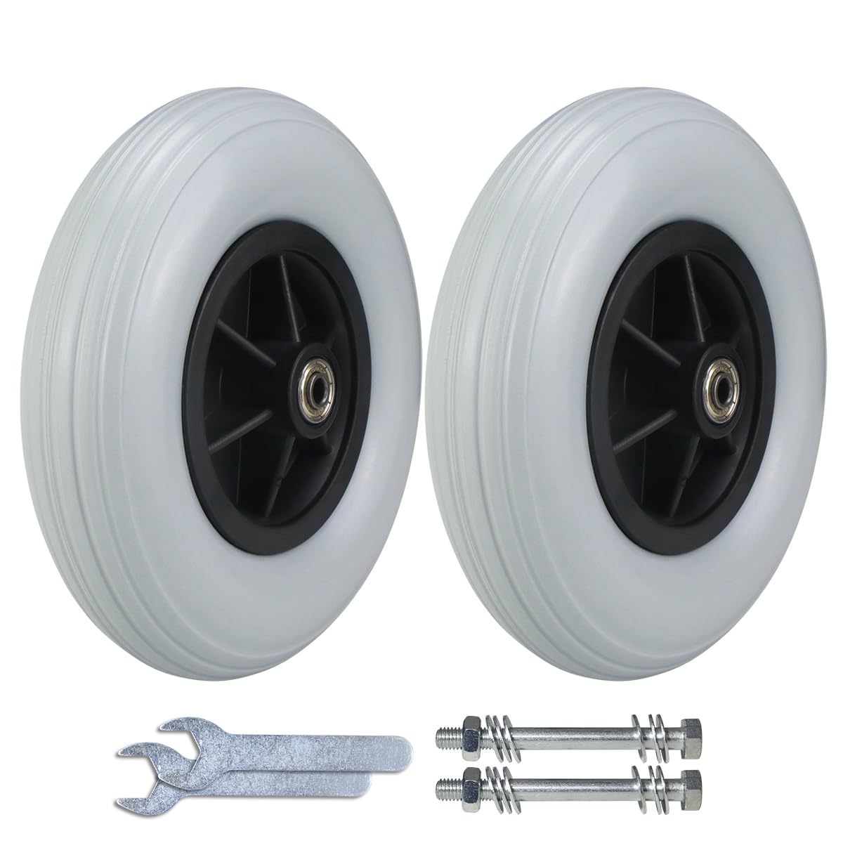 ◆QUANTITY OF GOODS: Two. Specification Name: 8"x2" (also known as 200x50)◆EXACT SIZE◆ wheel diameter 7 13/16"(198mm), total width of axle heads on both sides 2 3/8"(60mm), bearing hole 5/16"(8mm). Please check the dimensions marked in the picture. If the above three dimensions are met, it can be installed, which is suitable for many electric wheelchairs and manual wheelchairs. (other dimensions: screw length 3 3/8", tire width 1 14/16")◆INCLUDING ACCESSORIES◆ screw and mini simple wrench are convenient for self installation.◆HIGH QUALITY MATERIAL◆ the tire is made of polyurethane, the hub is made of polypropylene, and the bearing is 608zz, which is high-quality and durable.◆AFTER SALES SERVICE◆ provide you with a one-year product warranty. If you have any problems, please contact us and we will be happy to solve them for you.