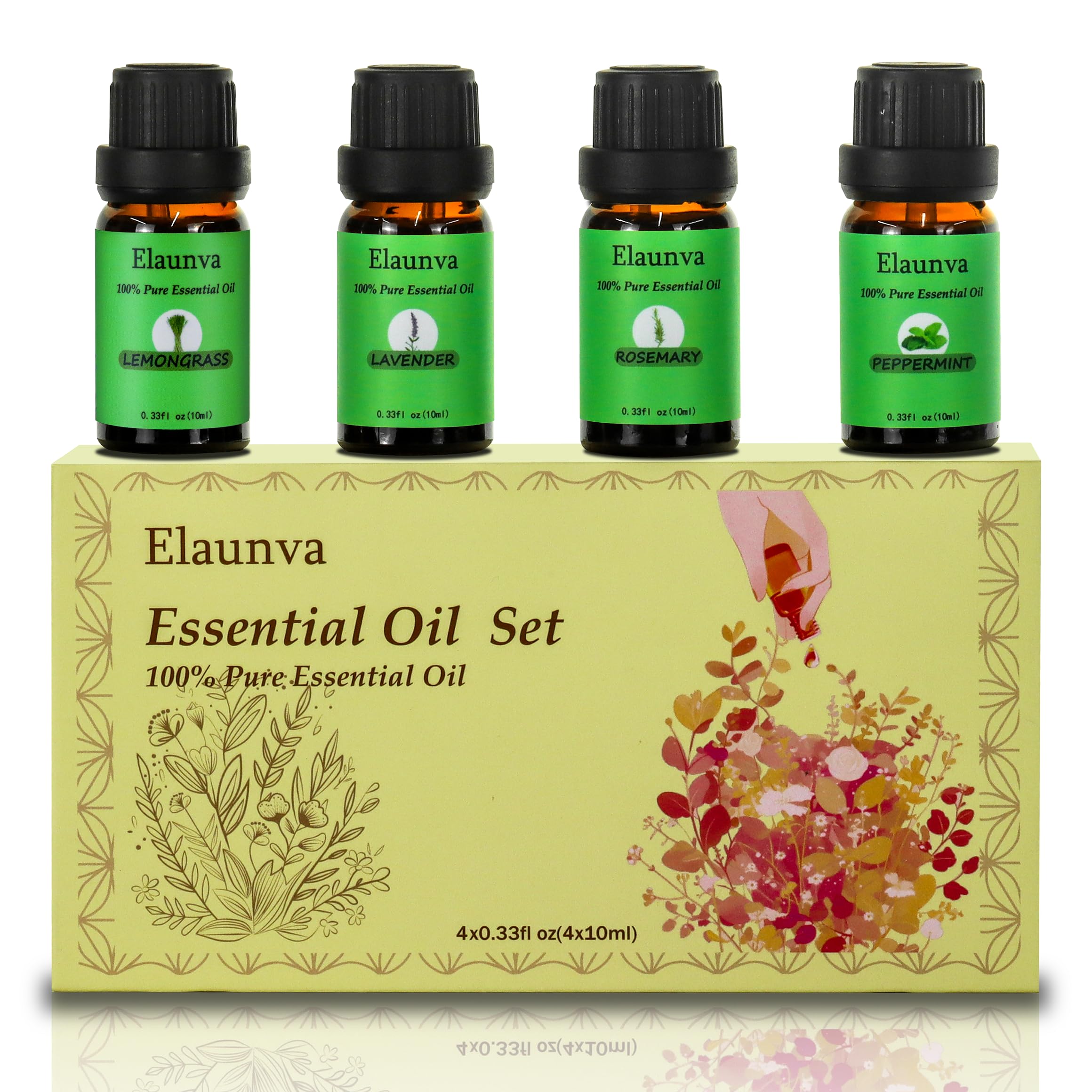 Elaunva Essential Oils Set,100% Pure Natural,4 0.33 Fl Oz (Pack of 4), Green