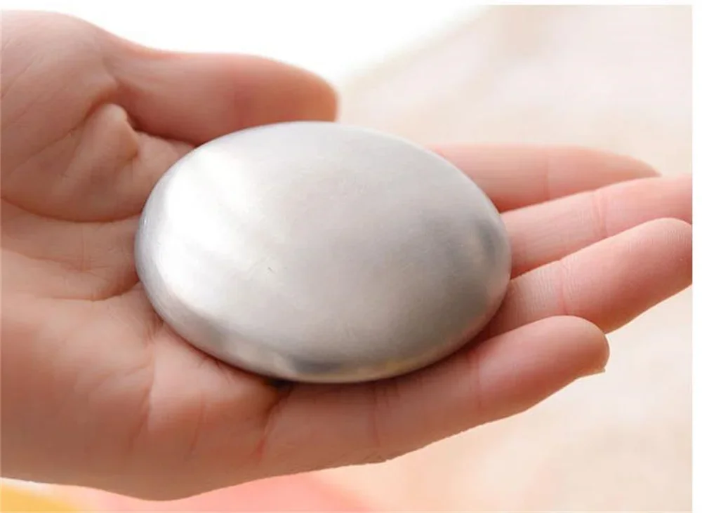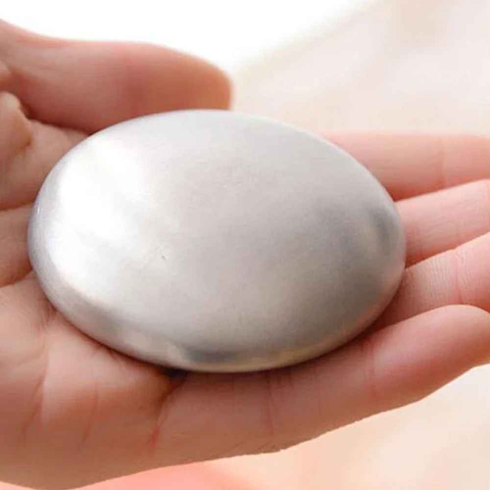 Eliminate stubborn kitchen odors from your hands with this Stainless Steel Odor Remover Soap Bar. Designed to remove strong smells such as garlic, onion, fish, and other cooking odors, this reusable stainless steel “soap” works with just water—no chemicals required.