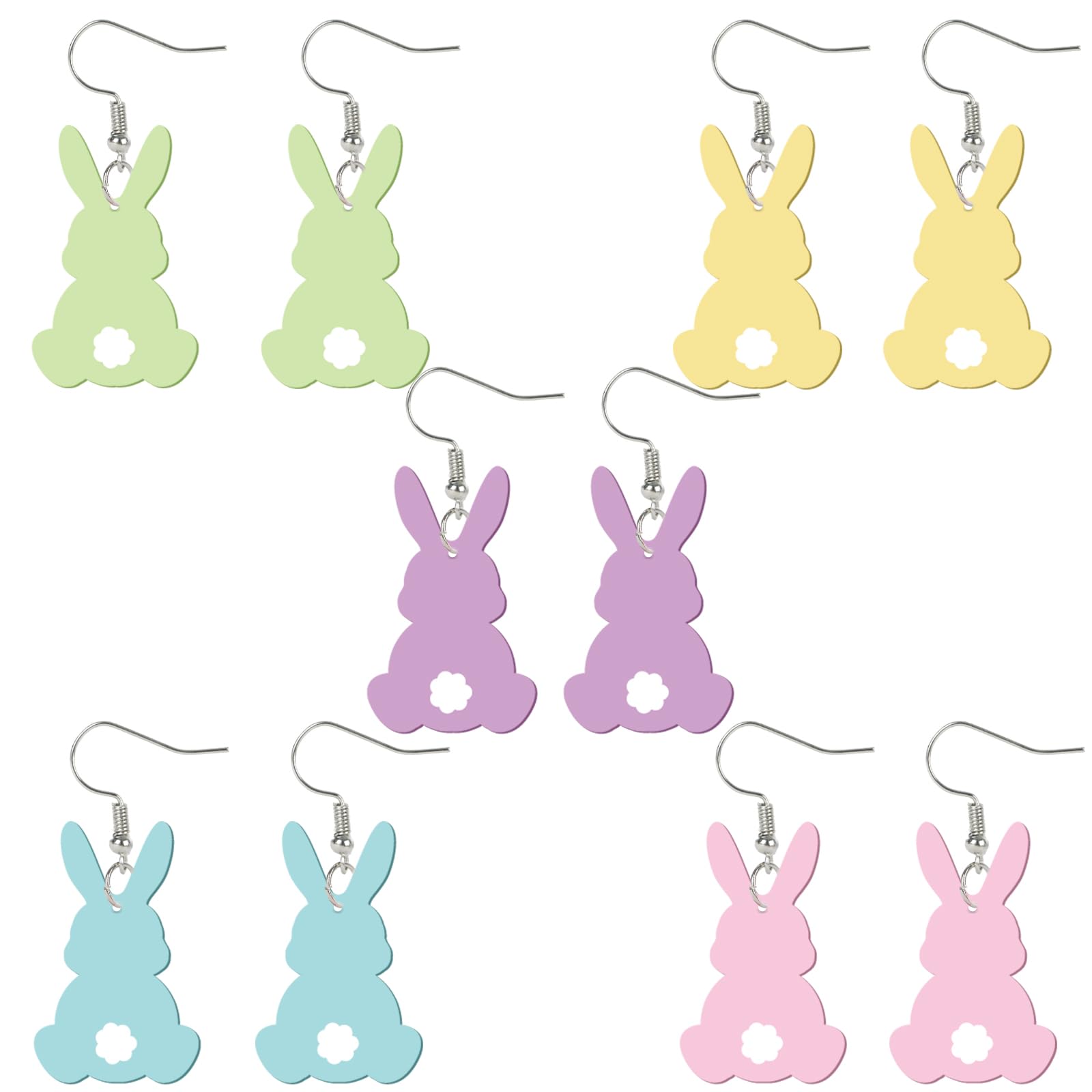 JarThenaAMCS 5 Pairs Easter Bunny Dangle Earrings Pastel Rabbit