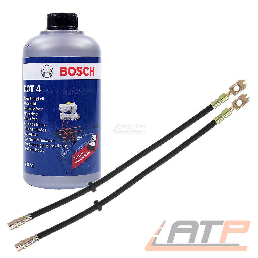 2x Bremsschlauch Vorderachse + 1x 500ml BOSCH Bremsflüssigkeit DOT-4
