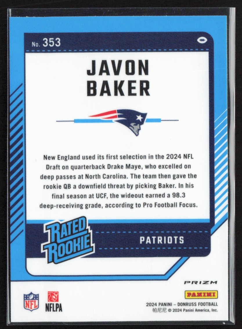 | 2024 DONRUSS OPTIC RATED ROOKIES RED WAVE JAVON BAKER RC NEW ENGLAND PATRIOTS |