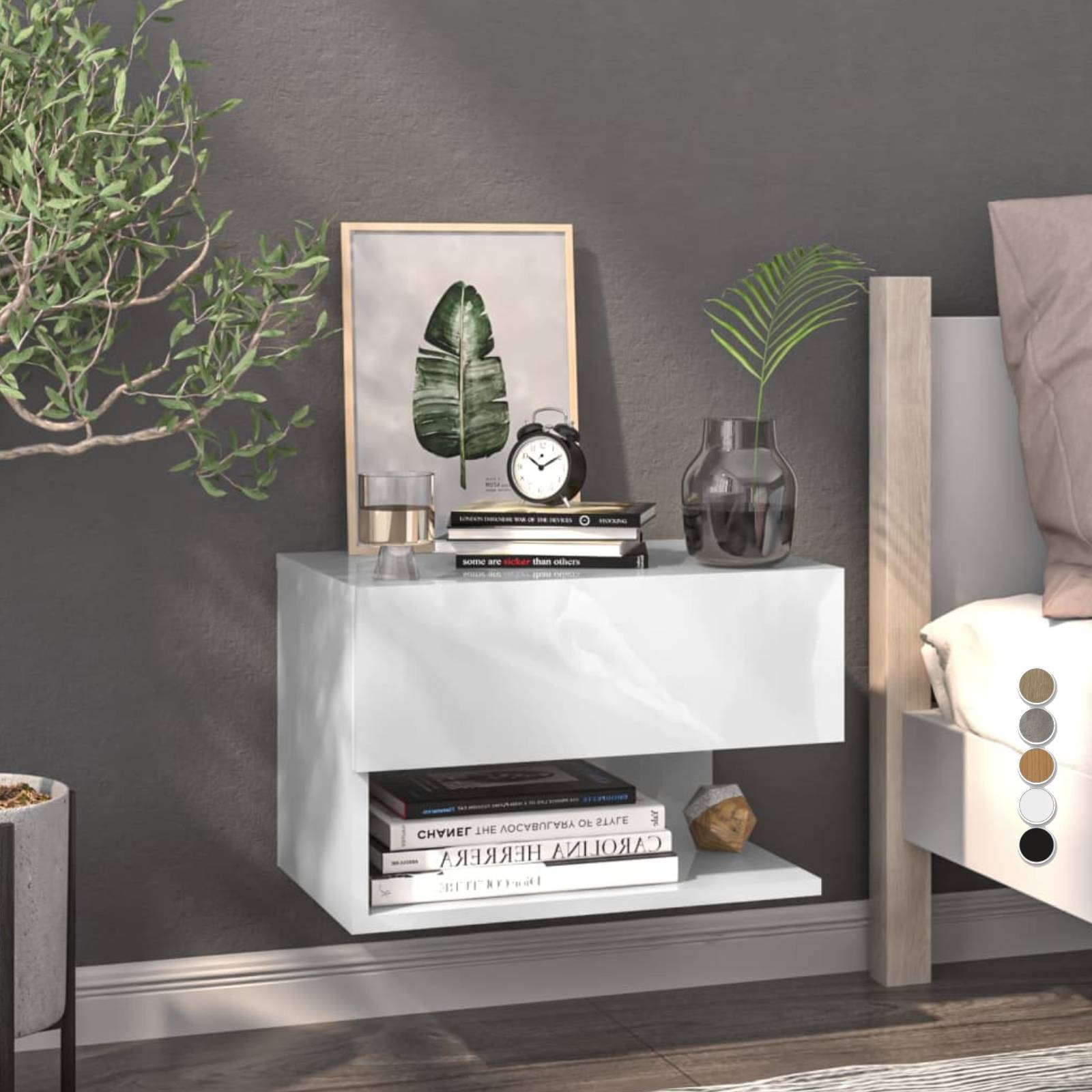 Mit seinem stilvollen Design ist dieser Nachttisch eine zeitlose Ergänzung zu deiner Inneneinrichtung. Stabiles Material: Das Gestell des Nachttisches besteht aus kaltgewalztem Stahl. Kaltgewalzter Stahl ist eine Art kohlenstoffarmer Stahl, der im „Kaltwalzverfahren“ hergestellt und bei nahezu normalen Raumtemperaturen verarbeitet wird. Kaltgewalzter Stahl besitzt eine glattere Oberfläche, eine höhere Festigkeit und lässt sich präziser verarbeiten.Reichlich Stauraum: Dieser Schrank bietet praktischen Stauraum, um deine Zeitschriften, Bücher, Fernbedienungen und andere kleine Gegenstände gut geordnet und in Reichweite aufzubewahren.Pflegeleicht: Der Tisch lässt sich mit einem feuchten Tuch leicht reinigen und erfordert wenig Pflege.Einfaches Umstellen: Dieser Beistelltisch verfügt über 4 Rollen und lässt sich daher flexibel und mühelos umher verschieben.Praktischer Griff: Der Nachtschrank ist mit 3 Griffen ausgestattet, die das Öffnen und Schließen des Schranks erleichtern und gleichzeitig zu seiner ansprechenden Optik beitragen.