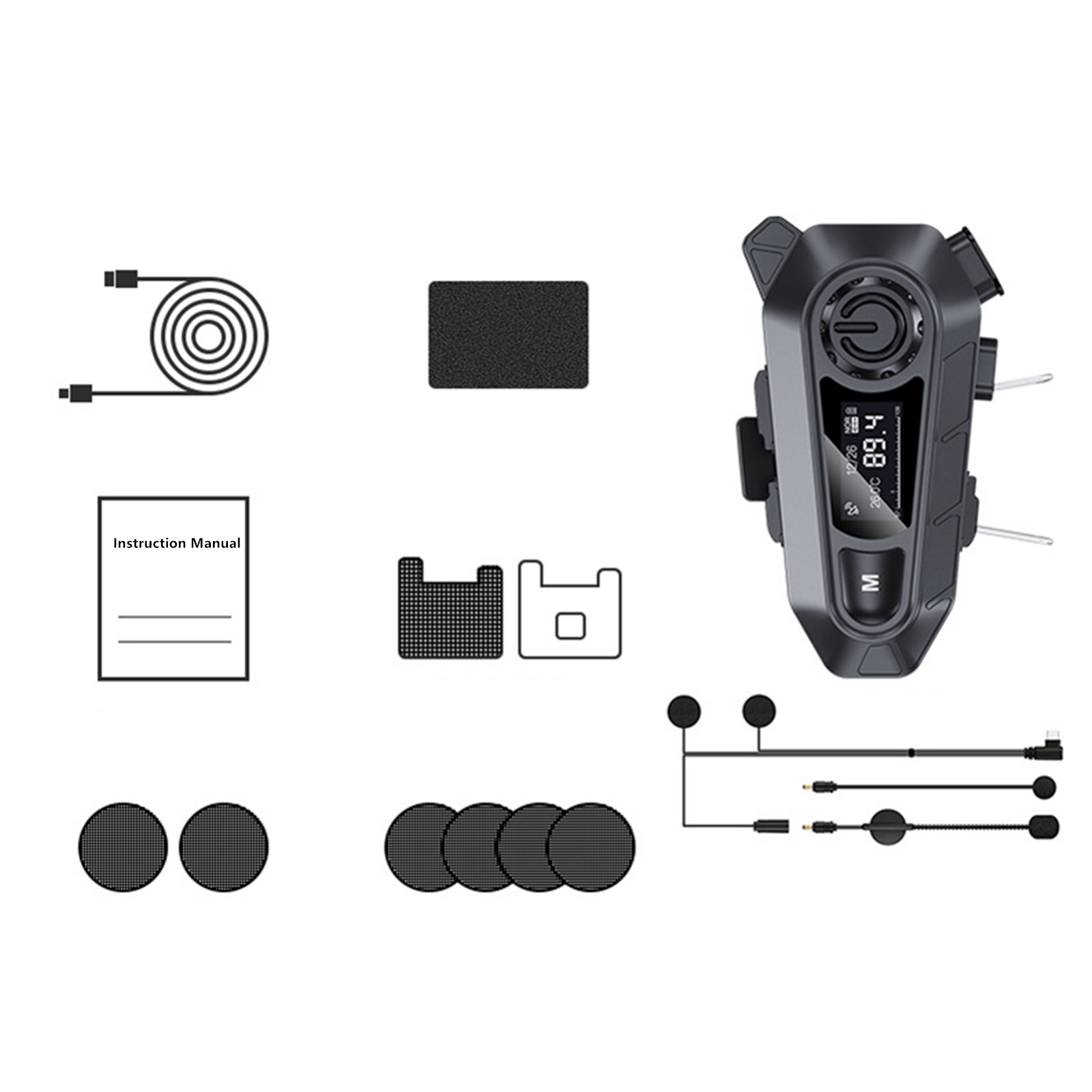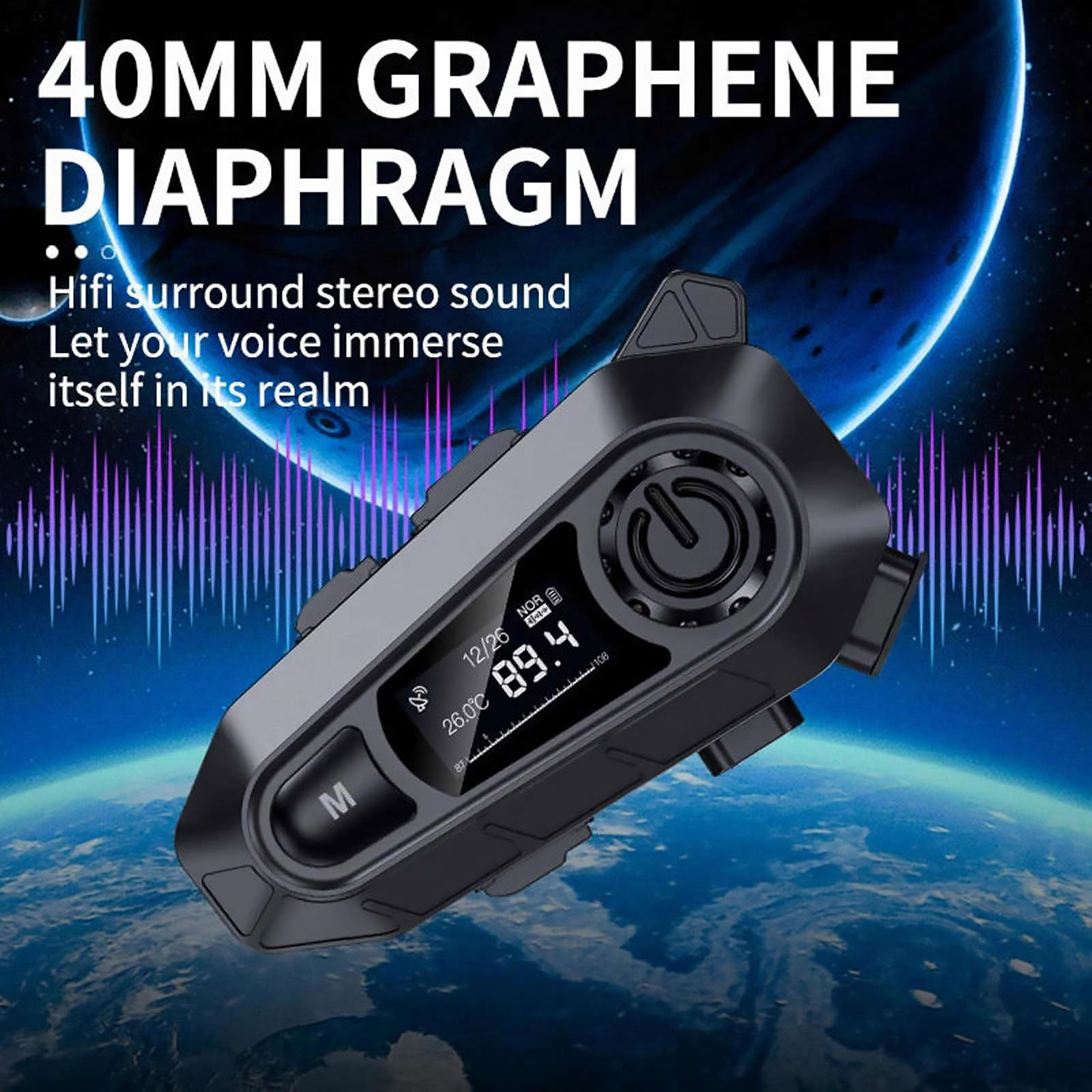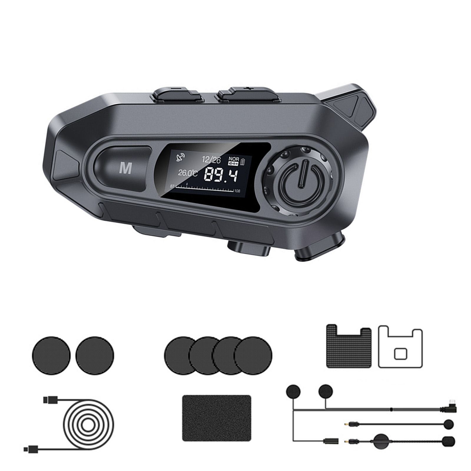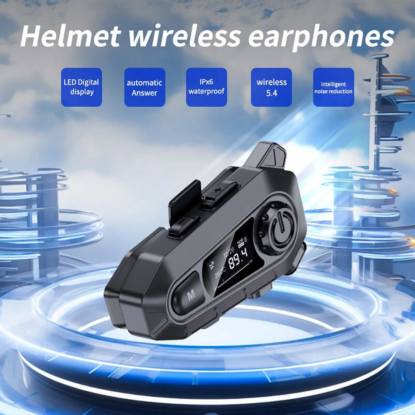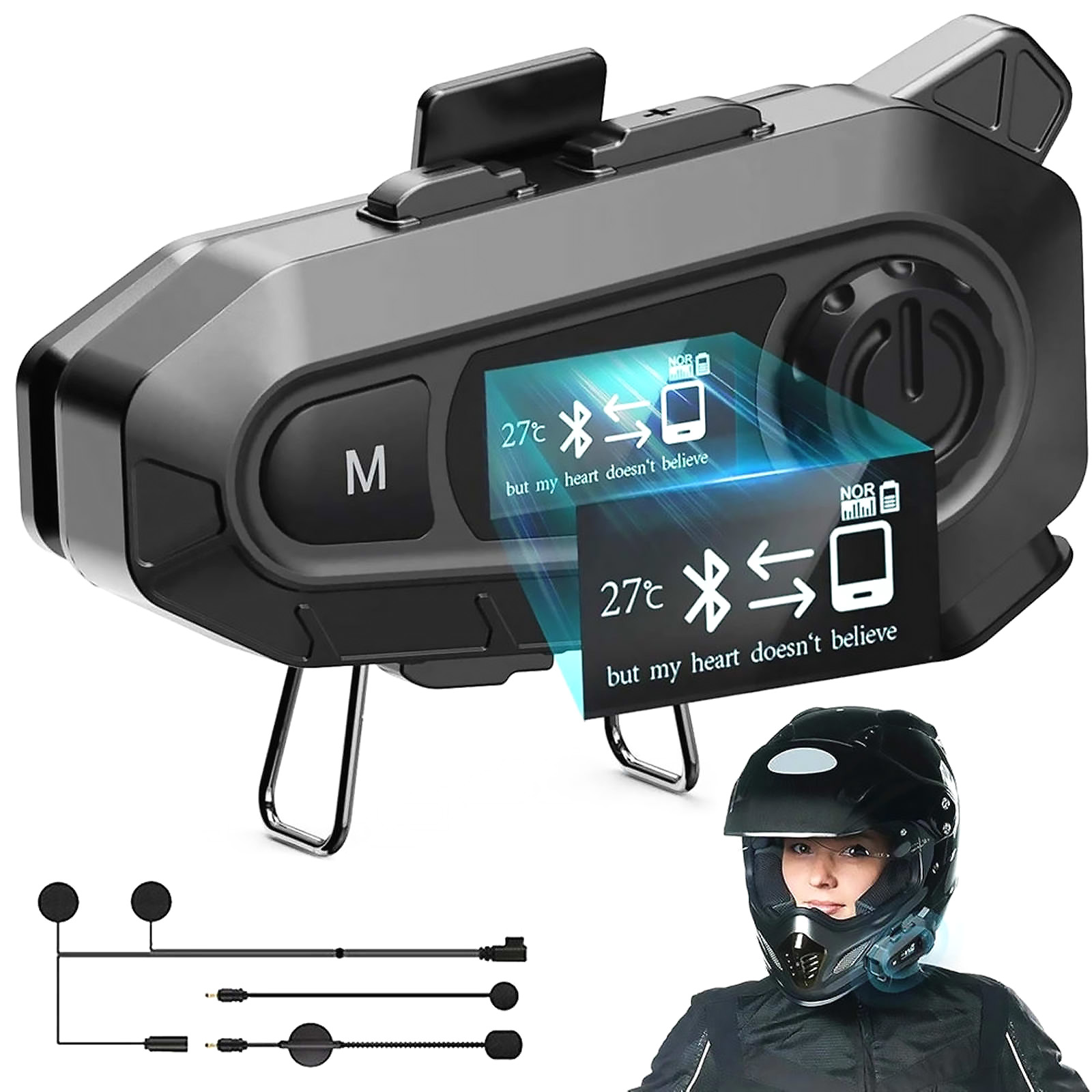 Stable Connection & Clear Display: This motorcycle bluetooth headset adopts advanced Bluetooth 5.4 technology, ensuring wireless connections with zero delay—perfect for staying connected while riding. It maintains a stable link up to 15 meters, so you never have to worry about sudden disconnections during long trips. The newly upgraded LCD digital display is clearly shows all essential information, including battery capacity, bluetooth pairing status and FM radio channels. This intuitive display eliminates guesswork and delivers a smooth, user-friendly experience.