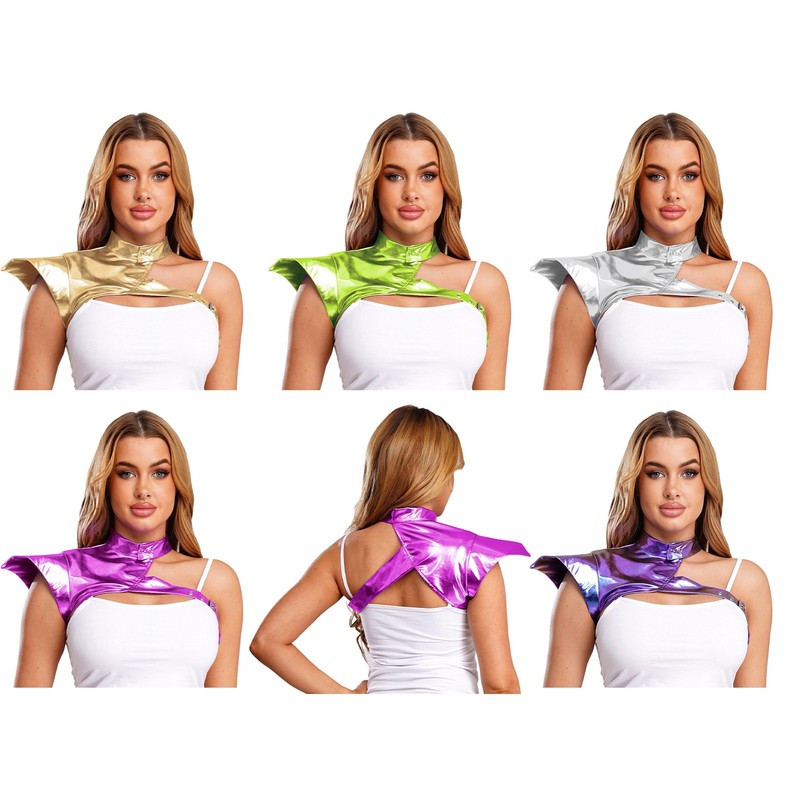 Womens Gothic Steampunk Shoulder Armor Shiny Metallic Chest Harness Gothic