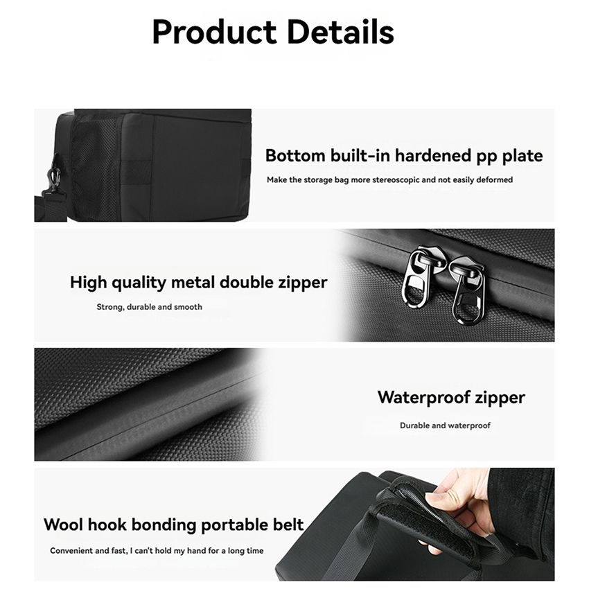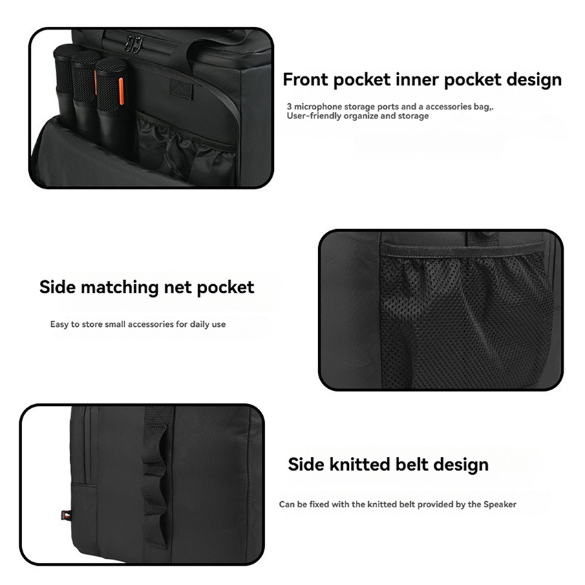 Features: l A dedicated carrying case designed for the popular Turtlebox Original Gen3 waterproof speaker for overseas use l Features a 900D reinforced spandex membrane outer layer with waterproof zips, complemented by a durable 210D nylon inner lining. Effectively repels splashes and facilitates easy daily cleaning – simply wipe down to maintain a clean, tidy appearance l The front pocket incorporates three microphone storage slots and an accessory pouch for organised storage l Mesh side pockets provide convenient storage for everyday small accessories l Four snap fasteners allow secure attachment to locations such as pick-up trucks or boats l Features a handle strap alongside an adjustable shoulder strap for easy portability l Incorporates a PP board base with 5mm thick bubble wrap padding, enhancing the bag's structural integrity and preventing collapse Specification: l Material: 900D Thickened Spandex Membrane l Size: 32x24x27.5cm l Color: Black l Quantity: 1 PCS l Applicable Model: for Turtlebox Original Gen3 Package: l 1x Speaker Storage Bag