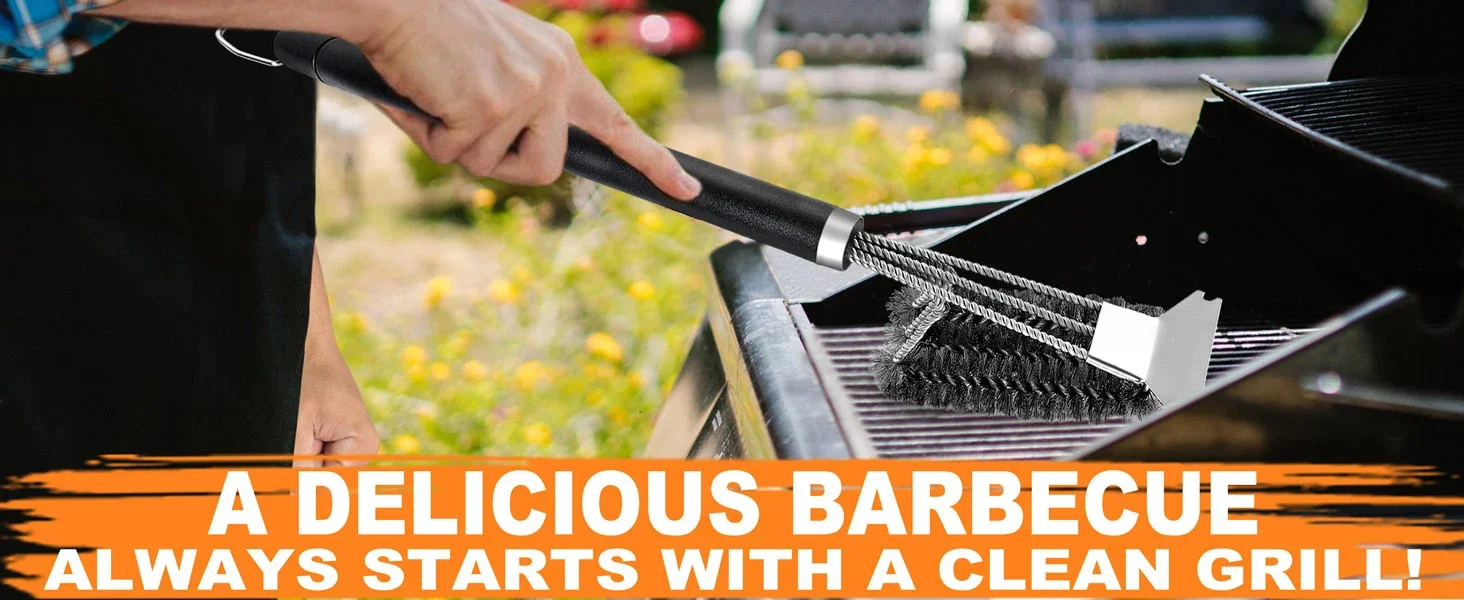 Keep always your grill new and shiny by using our stainless steel grill scrubber brush.
