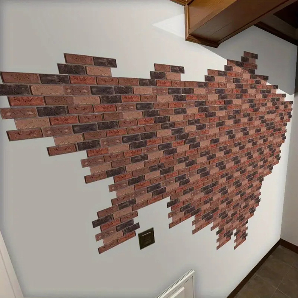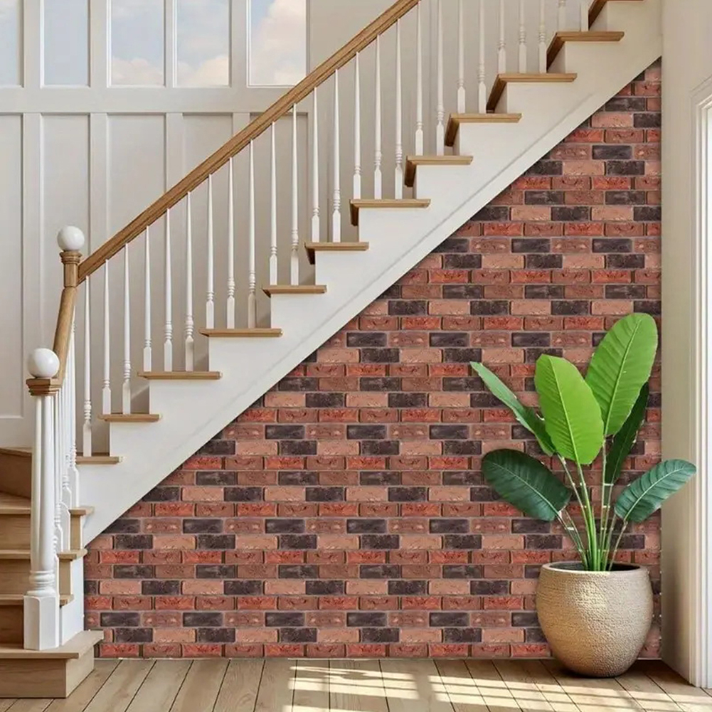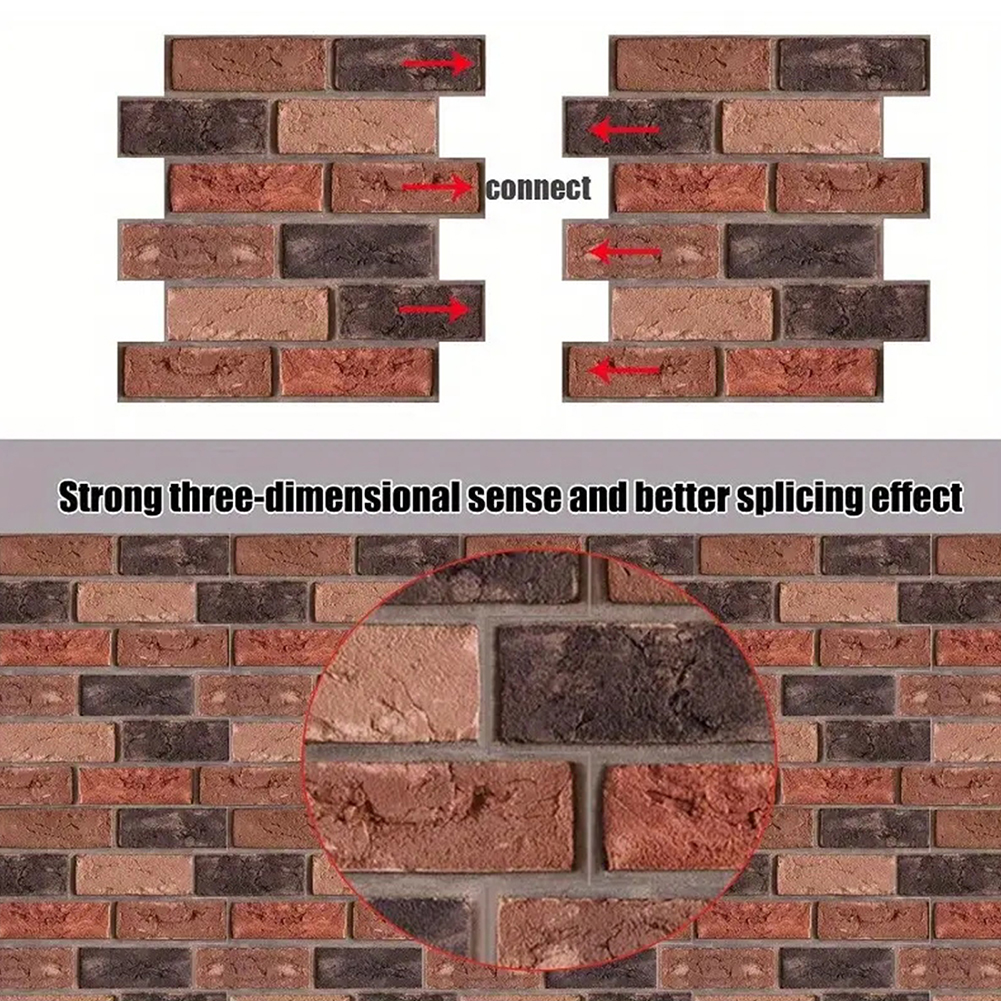 BRICK PATTERN TILES: Decorated with bricks pattern, in vitage and retro style, high-quality 3d brick wallpaper peel and stick will not discoloration or peeling after installation, realistic tile effect with 3d texture.