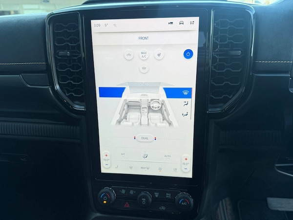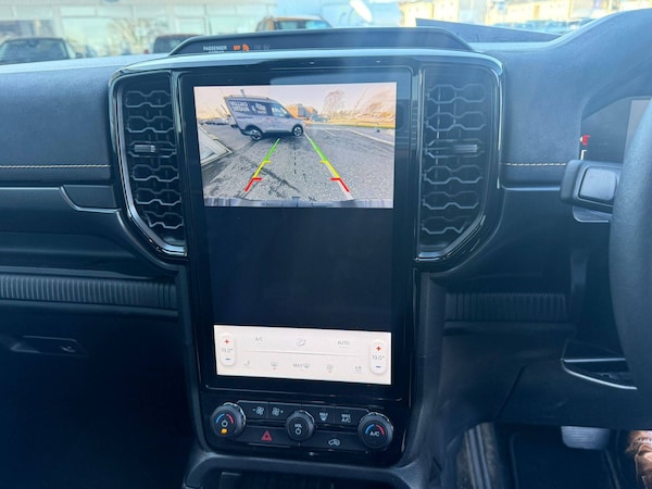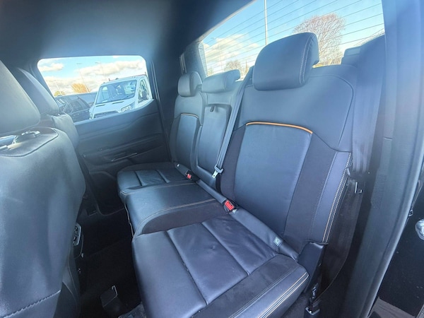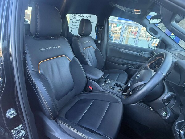 Child proof rear door locks, ISOFIX child safety seat attachment, Tyre pressure sensors, AEB and ISA, Electric power assisted steering, Electronic automatic gearshift, Evasion steer assist, Ford Pro Telematics Essentials, Fordpass connect modem including eCall and FordPass connectivity, Ice warning, Partial TFT/LCD instrument cluster, Passenger side roof mounted grab handle, Pre collision assist, Road departure warning, Trip computer, 360 lighting, Accent colour door handles, Accent colour exterior mirrors, Accent colour front bumper, Accent colour rear bumper, Acoustic laminated windscreen, Assisted conventional tailgate, Automatic headlights, Composite side step, Daytime running lights, Dual power heated fold back door mirror with puddle lamps, E-marked glass, Electric rear window defroster, Electric windshield defroster, Electrochromic interior mirror, Foam in bumper, Fog lamp bezel, Front fender painted grill, Front headlamp leveling, Front splash guard, Front towing hooks, High mounted stop lamp, Honeycomb radiator grille, Hood applique, Integrated rear bumper step, Ladder rack, Large wheelarch flares, LED Front fog lamp, Less front bumper lip, Level 1 Taillamps, Level 2 Headlamps, Manual liftgate, Metal underbody protection, Non locking capless fuel fill, Outside thermometer, Pickup side rails, Plastic cab roll over bar, Power front windows with one touch up/down, Power rear windows, Privacy glass, Rain sensitive windshield wipers, Rear bumper extension, Rear fog lamps, Rear splash guard, Roof rails, Self coloured decklid handles, Solid paint, Trailer tow class I, Trailer tow wiring, Under hood engine cover, Underbody wax protection, Wildtrak X front door scuff plates, Wildtrak X tailgate and door badge, Cargo light, Door handles with inside MIC, Driver and passenger sunvisor with mirror, Ebony headliner, Electronic dual zone automatic air conditioning, Fresh air heater, Glove box lids, Glove box lights, Heated steering wheel, LED ambient interior lighting, Less load rest, Less outside tie down hooks, Micro rib embossed leather upholstery, Non woven carpet, Overhead console with dome lamps, Pollen filter, Premium air register, Premium front and rear floor mats, Pull out cup holder, Reach and rake adjustable steering column, Rear floor ducts, Roof storage for driver sunglasses, Steering wheel with multimedia controls, Tie down rails and rope hooks, Washer tank level warn lamp, Front seat pack 7 - Ranger, Functional upgrade pack 3 - Ranger, Heavy duty