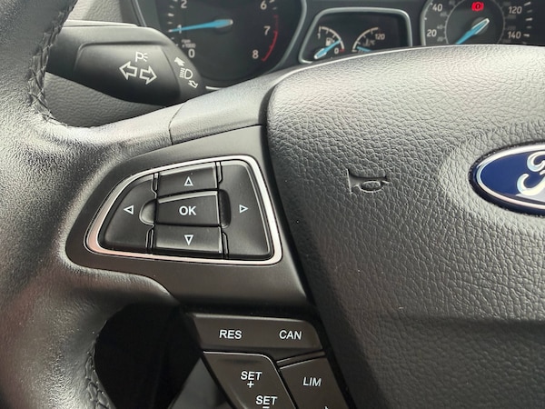 3x3 point rear seatbelts, ABS + traction control, Active city stop, Driver and passenger airbags, Driver and passenger side airbags, Electronic brake force distribution, Emergency brake assist, ESP, Fasten seatbelt reminder, Front and rear curtain airbags, Height adjustable front seatbelts, Hill start assist, Intelligent Protection System (IPS), Tyre pressure monitoring system, Cruise control with active speed limiter, Driver's information system, Easy fuel capless refuelling system, Electric power steering, Trip computer, Body colour bumpers with black rubbing strip, Body colour door handles, Body colour door mirrors with integral indicators, Chrome beltline trim, Chrome finish on upper door line, Electric front windows, Front fog lamps, Heated door mirrors, Intermittent rear wash/wipe, Quickclear heated windscreen, Solid paint, 12V accessory sockets - front and rear, Air conditioning, Auxiliary power socket, Centre armrest with storage box, Cloth upholstery, Courtesy light in luggage compartment, Driver seat lumbar adjustment, Driver's seat manual height adjust, Front floor mats, Front/rear courtesy lights, Fully adjustable front headrests, ISOFIX child safety seat attachments, Leather gearknob, Premium centre console with armrest, Rake/reach adjustable steering wheel, Rear parcel shelf, Satin chrome interior door handles, Sports style front seats, Three height adjustable rear head restraints, Versatile split folding rear seat - 40/20/40, Satin black trim, Anti-theft immobiliser, Locking wheel nuts, MyKey system, Remote central double locking, Thatcham 1 volume sensing alarm, Ford SYNC 3 DAB audio system includes 8 inch colour touch screen with bluetooth and advanced voice control of audio and emergency assistance, Steering wheel mounted audio controls, 16 inch 5x2 spoke alloy wheels, Mini steel spare wheel