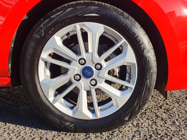 3 point seatbelts on all rear seats, Electronic stability control with hill start assist, Front and rear seat belt warning, Manual child lock in rear doors, Tyre pressure monitoring system, 4.2 inch Colour TFT Ice blue illumination analogue cluster, Cruise control with adjustable speed limiter and intelligent speed assist, Driver alert system, Electric power steering, Ford easy fuel, Ford SYNC 2.5 with DAB radio,8 inch screen, emergency assistance,Apple car play/Android auto, 2x USB, 6 speakers, Lane keep assist, Lane keeping aid, Rear parking distance sensors, Selectable drive modes (Normal, Sport, Track), Traffic sign recognition, Trip computer, 3rd brake light, Auto high beam, Automatic headlights, Body colour bumpers, Body coloured electrically operated with side indicators, Electric front windows/one touch facility, Electric rear windows, High gloss chrome surround with satin grille insert, LED headlights with LED daytime running light and integrated fog light, Quickclear heated windscreen, Rain sensing wipers and auto dimming rear view mirror, Rear privacy glass, Rear side wing doors, Rear wiper, Solid paint, 3 rear headrests, 3 seat bench in 2nd row, Adjustable head restraints, Centre console with opening armrest, 2x cupholders, 12v and USB, Cloth upholstery with metal grey stitching, Leather gear knob, Manual 2 way passenger seat adjust, Manual 4-way driver seat adjust, Manual air conditioning, Premium floor mats, Sensico wrapped steering wheel, Single front passenger seat, Standard suspension, Keyless start with 'Ford Power' starter button, MyKey system, Remote central locking, Thatcham alarm with power door dead locks, 15 inch 10 spoke structured steel wheel with black/silver cover, Tyre repair kit