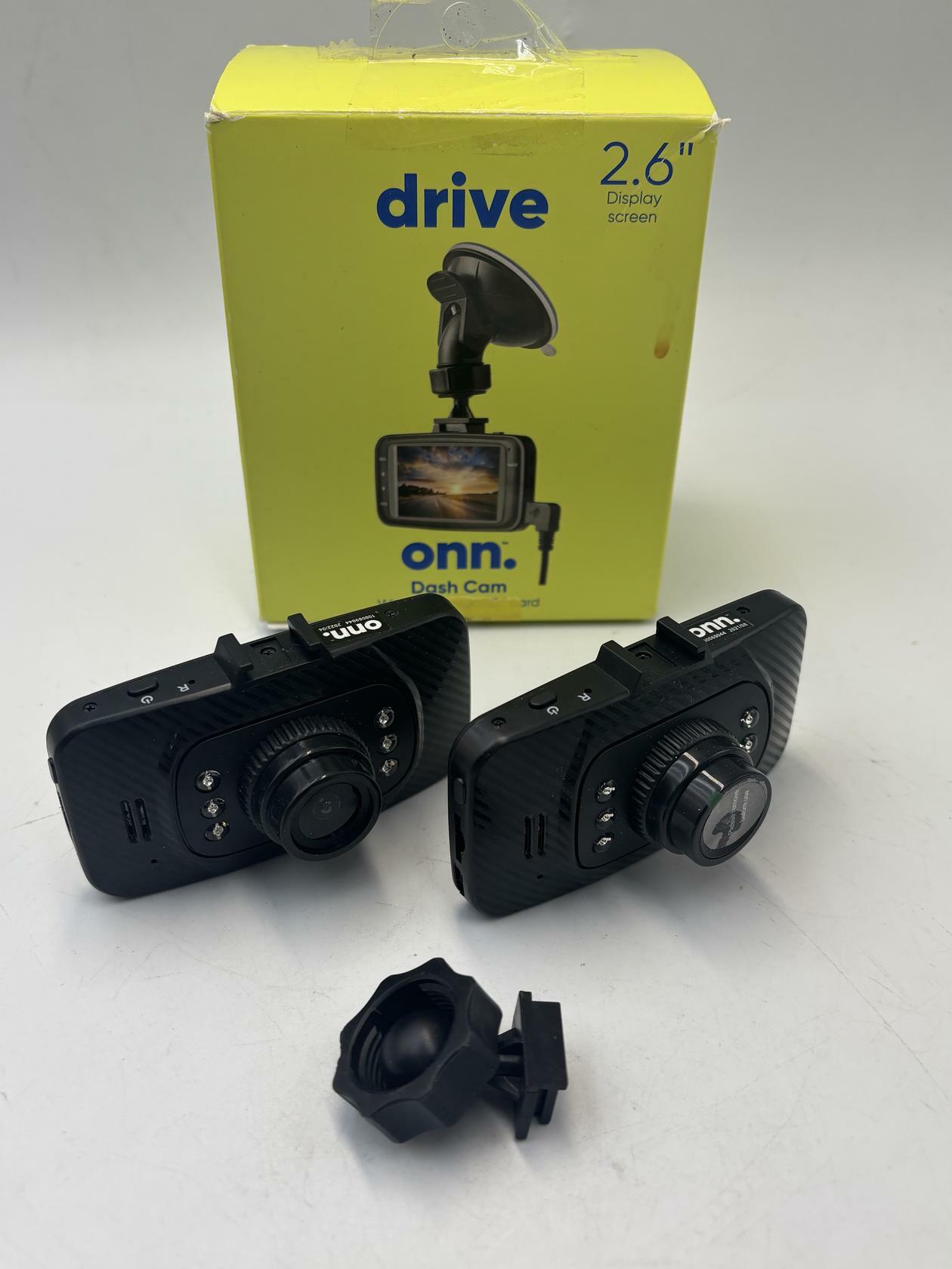 LOT OF 2 onn. Dash Cam with 8 GB microSD Card (Power Port Damaged)
